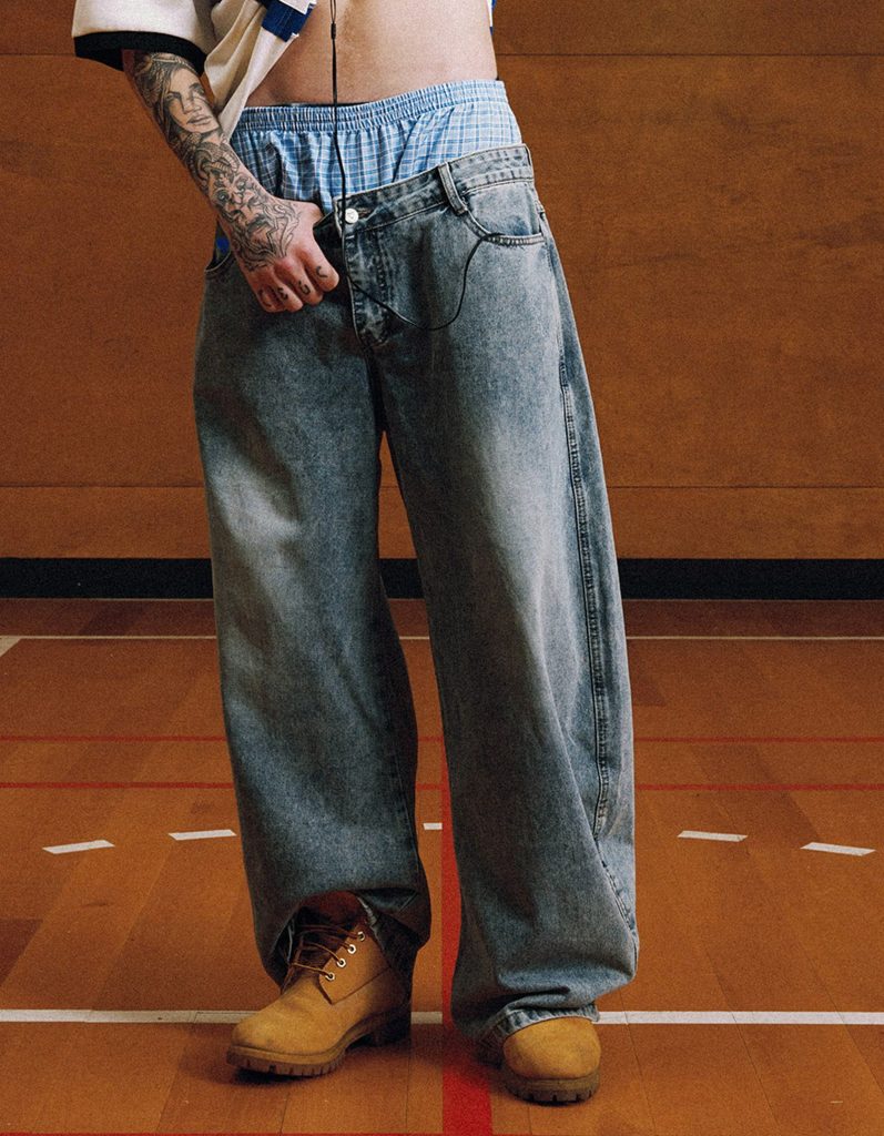 Aelfric Eden Illusion Denim Graphic Baaggy Barrel Jeans