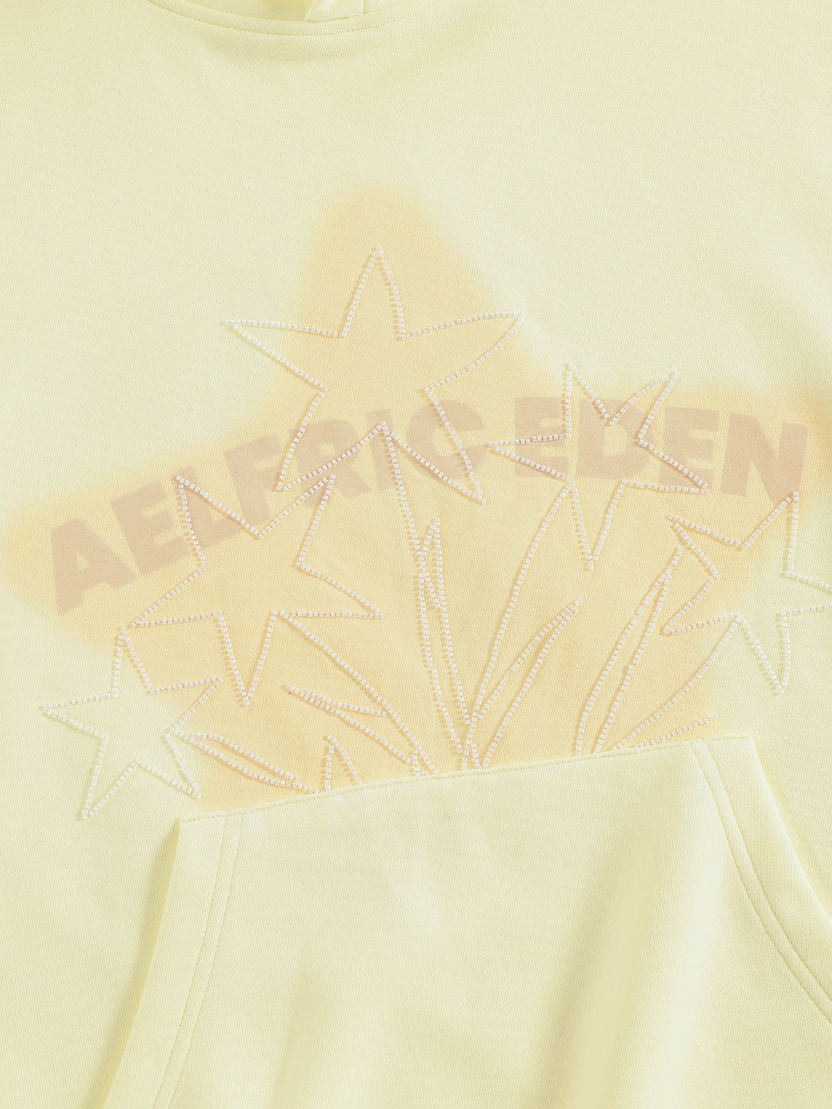 Inspired by the brilliance of the Eden Star. this hoodie radiates with a soft pastel hue and beaded embroidery that catches the eye with subtle shine. The oversized silhouette and premium cotton blend make it a go-to essential for both streetwear layering and everyday chill fits.