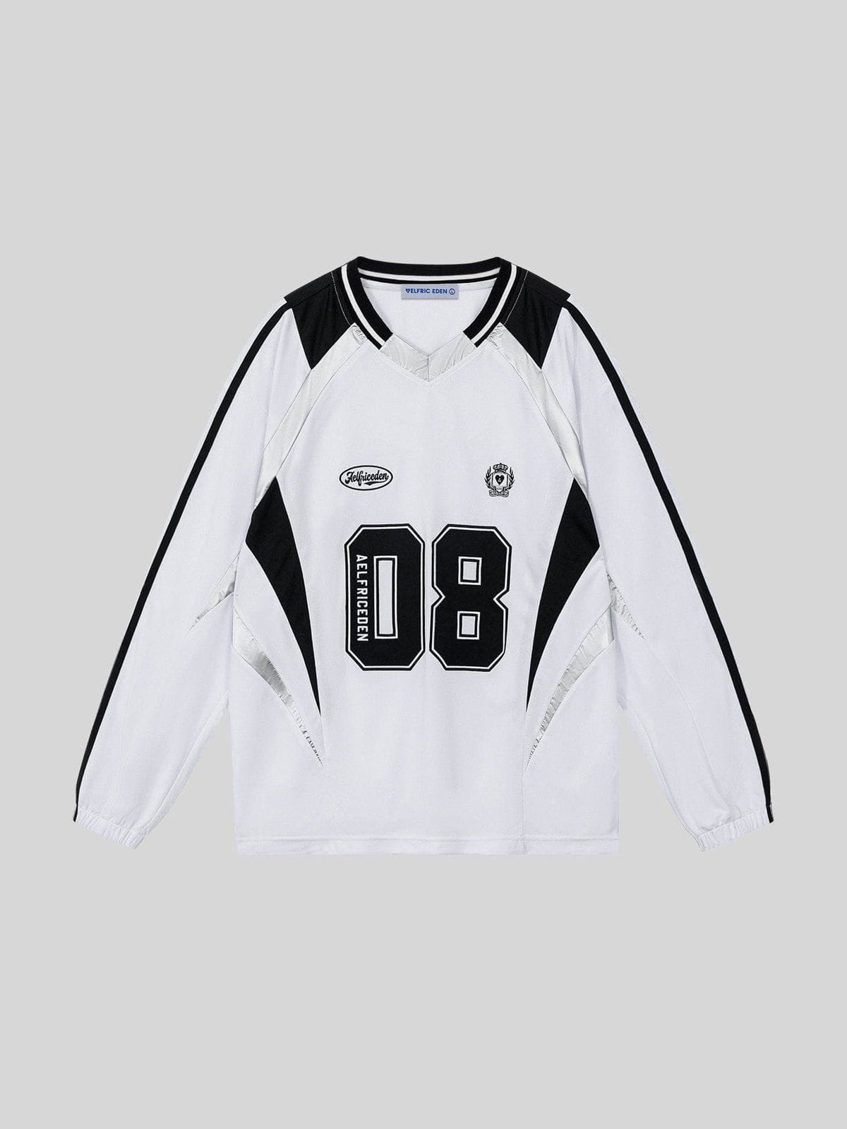 This sweatshirt combines a sporty design with bold black and white color blocking.The v-neck and relaxed fit give a laid-back feel. perfect for casual. street-style outfits.