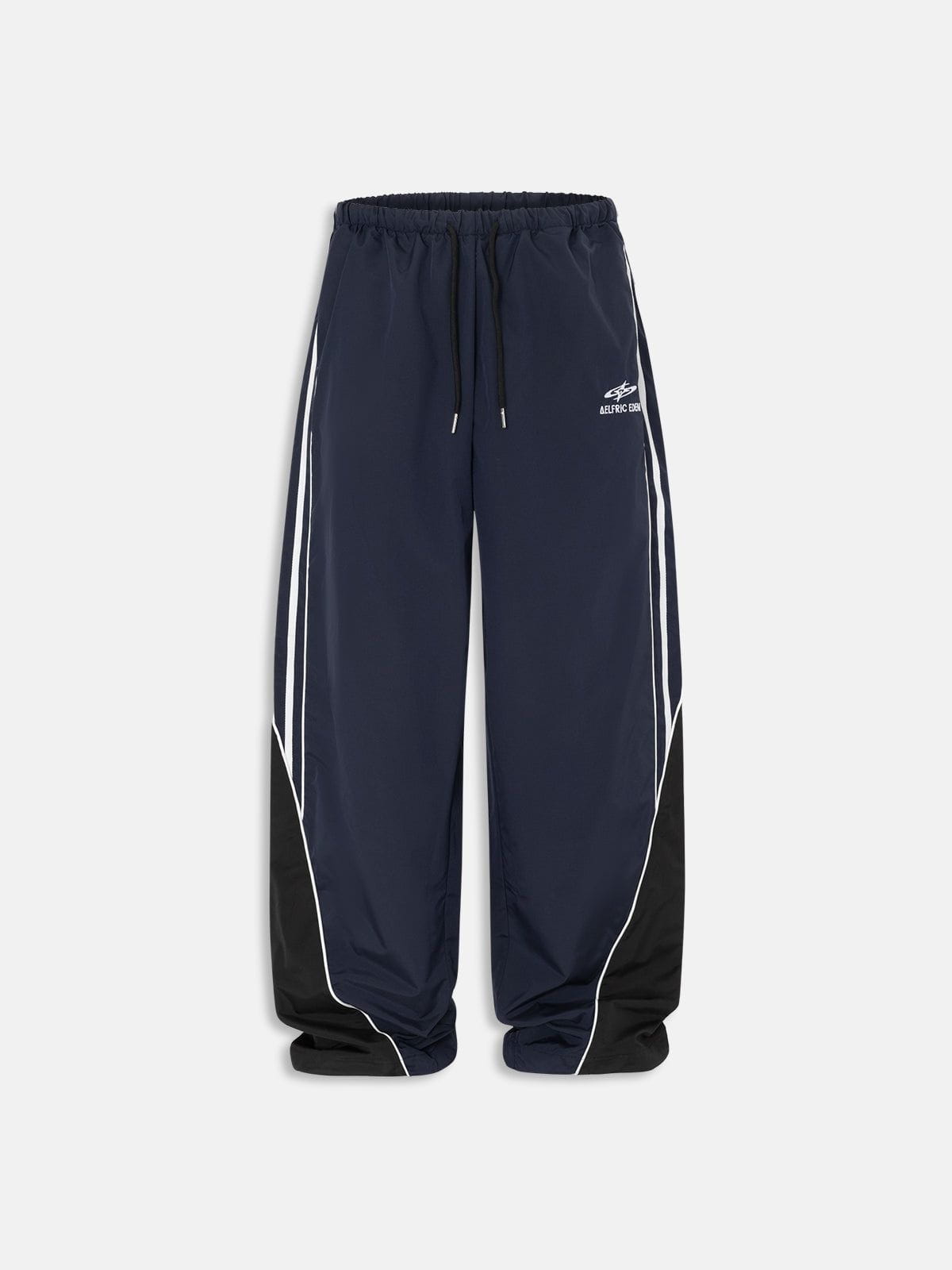 These baaggy track pants feature retro blocking. stripe panels. and bold embroidery for a fresh streetwear look. The breathable. wrinkle-resistant polyester and adjustable cuffs offer comfort and style. Perfect for skater fits. hip-hop outfits. urban fashion outfits. or casual athleisure.