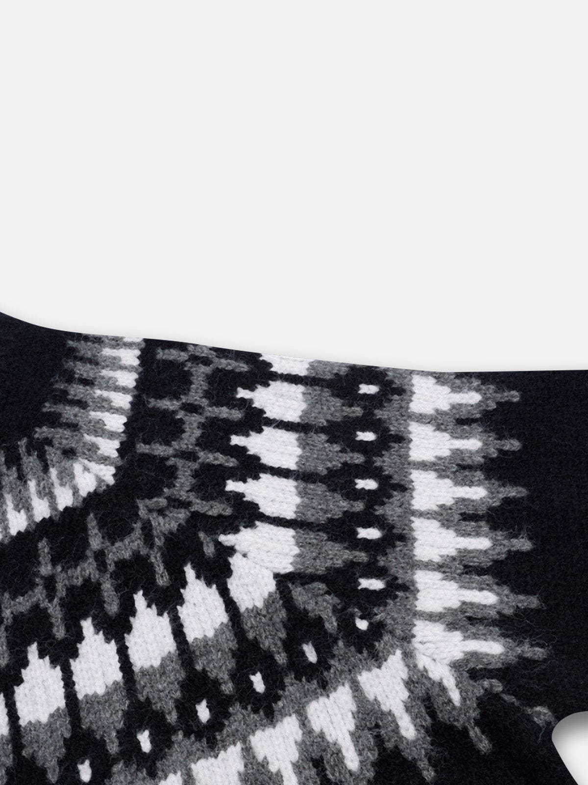 This sweater features a classic Fair Isle pattern. blending traditional design with modern comfort. The intricate knit adds texture and warmth. making it a stylish choice for cooler days.