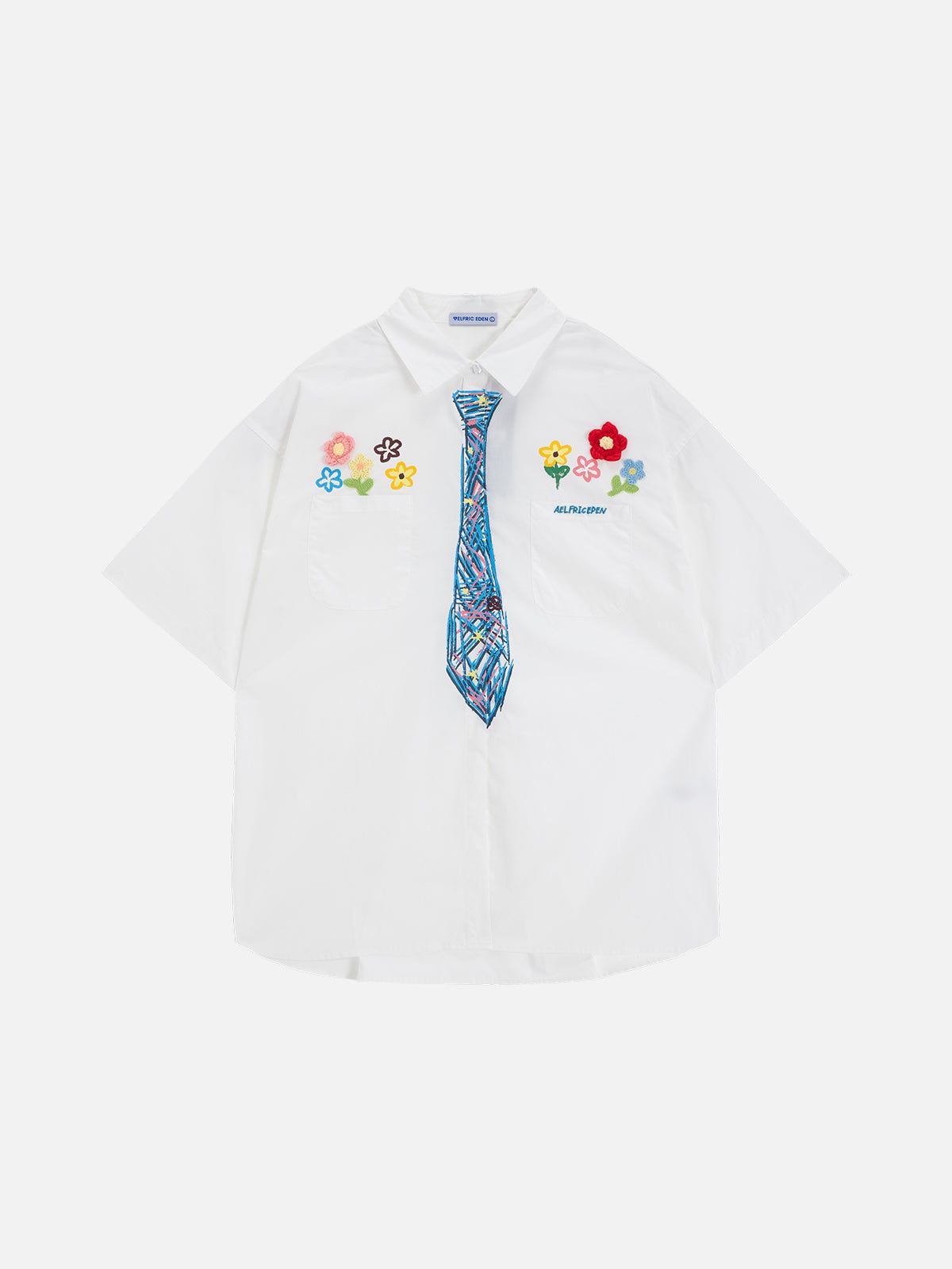 Add a pop of joy to your wardrobe with our vibrant shirt! Featuring a playful faux tie and handcrafted floral details. it’s a statement piece that turns heads. The rich. bold colors bring energy and excitement to every moment. Wear happiness. wear confidence!