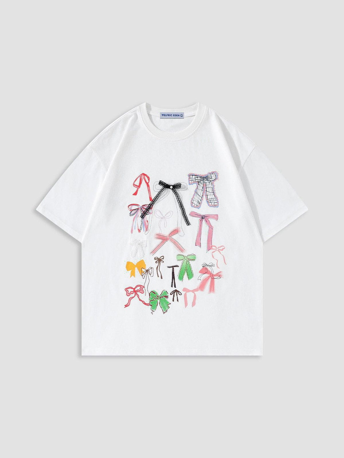 A playful fusion of printed and real bows brings this tee to life. Layers of texture and color create a whimsical. handcrafted feel??perfect for adding charm to any casual look.