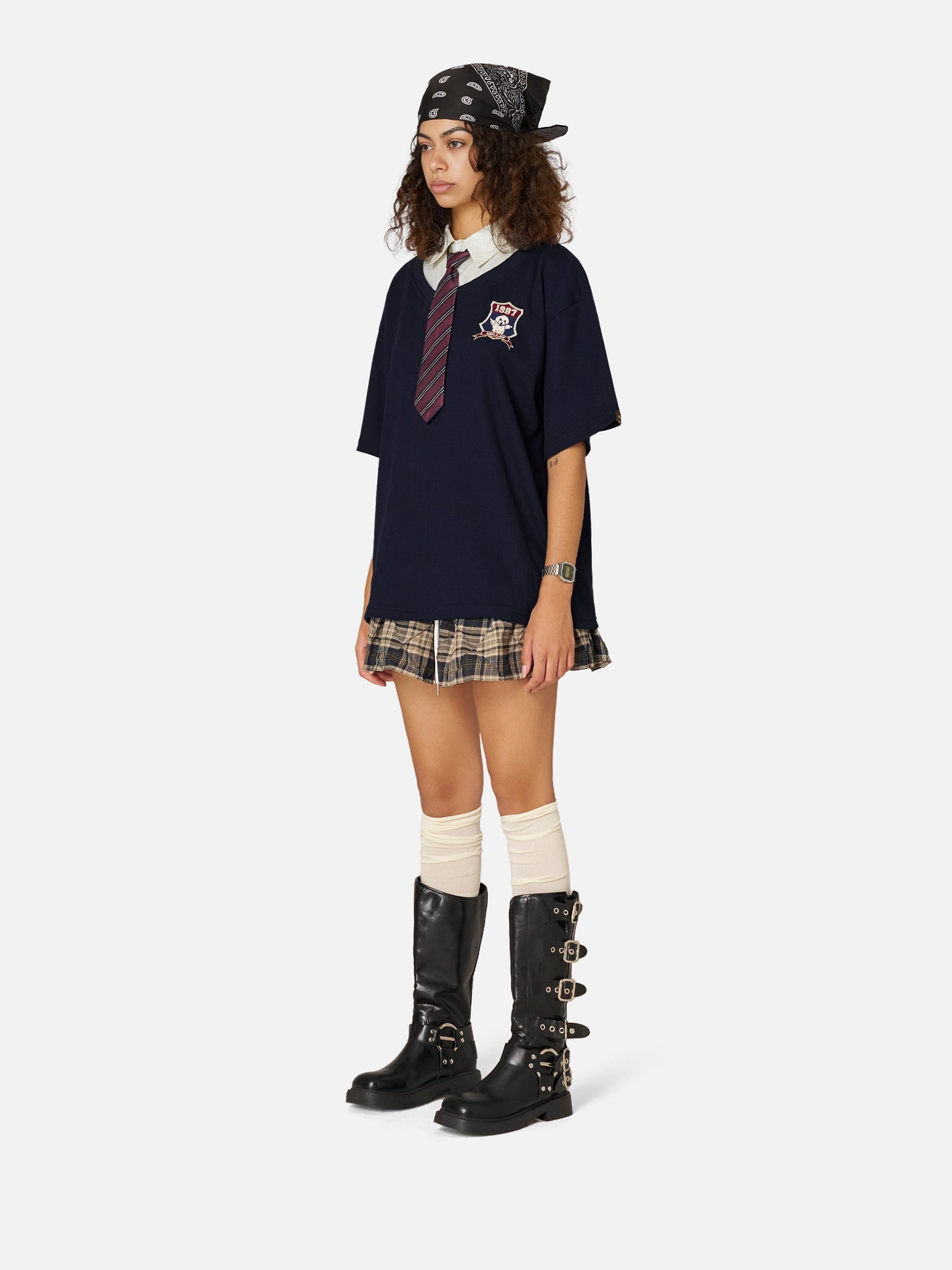 The Aelfric Eden Layered Stripe Tie Tee Tee combines classic collegiate style with modern fashion elements. Its design intricately blends stripes and tie elements. showcasing a unique charm. With a sleek and elegant appearance. coupled with comfortable fabric. it becomes a must-have for fashion enthusiasts and campus culture aficionados.