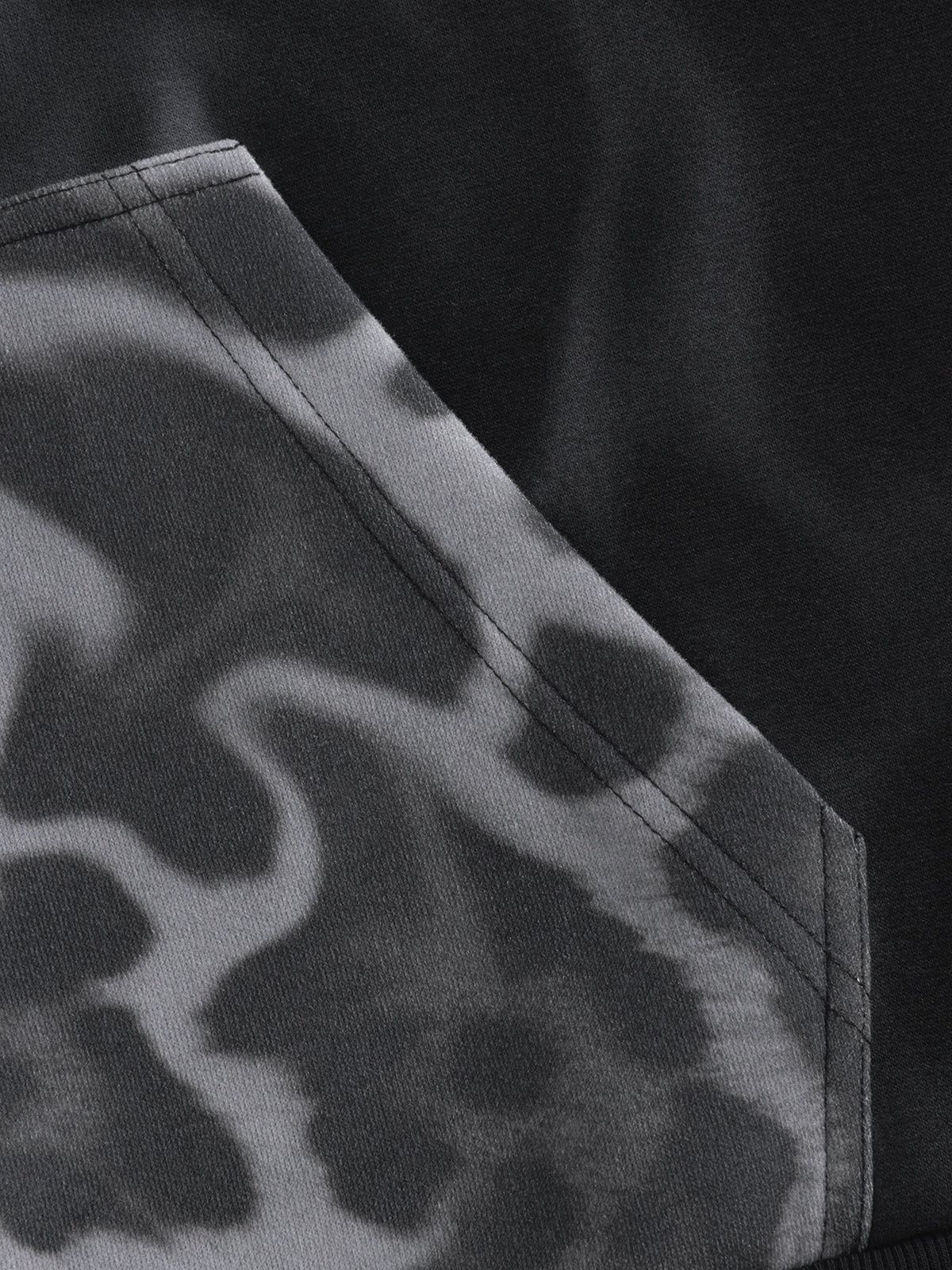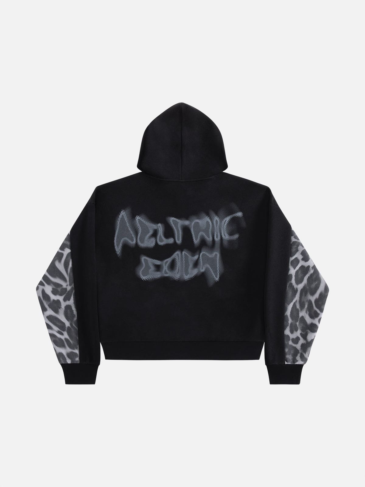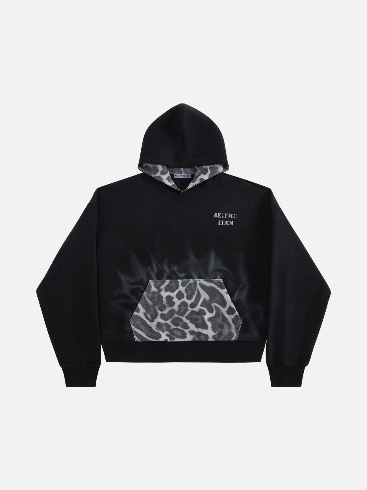 Leopard and graffiti-inspired graphics define the Leopard Graffiti Boxy Pullover Hoodie. bringing bold visual energy to a relaxed. boxy silhouette for a street-ready statement.