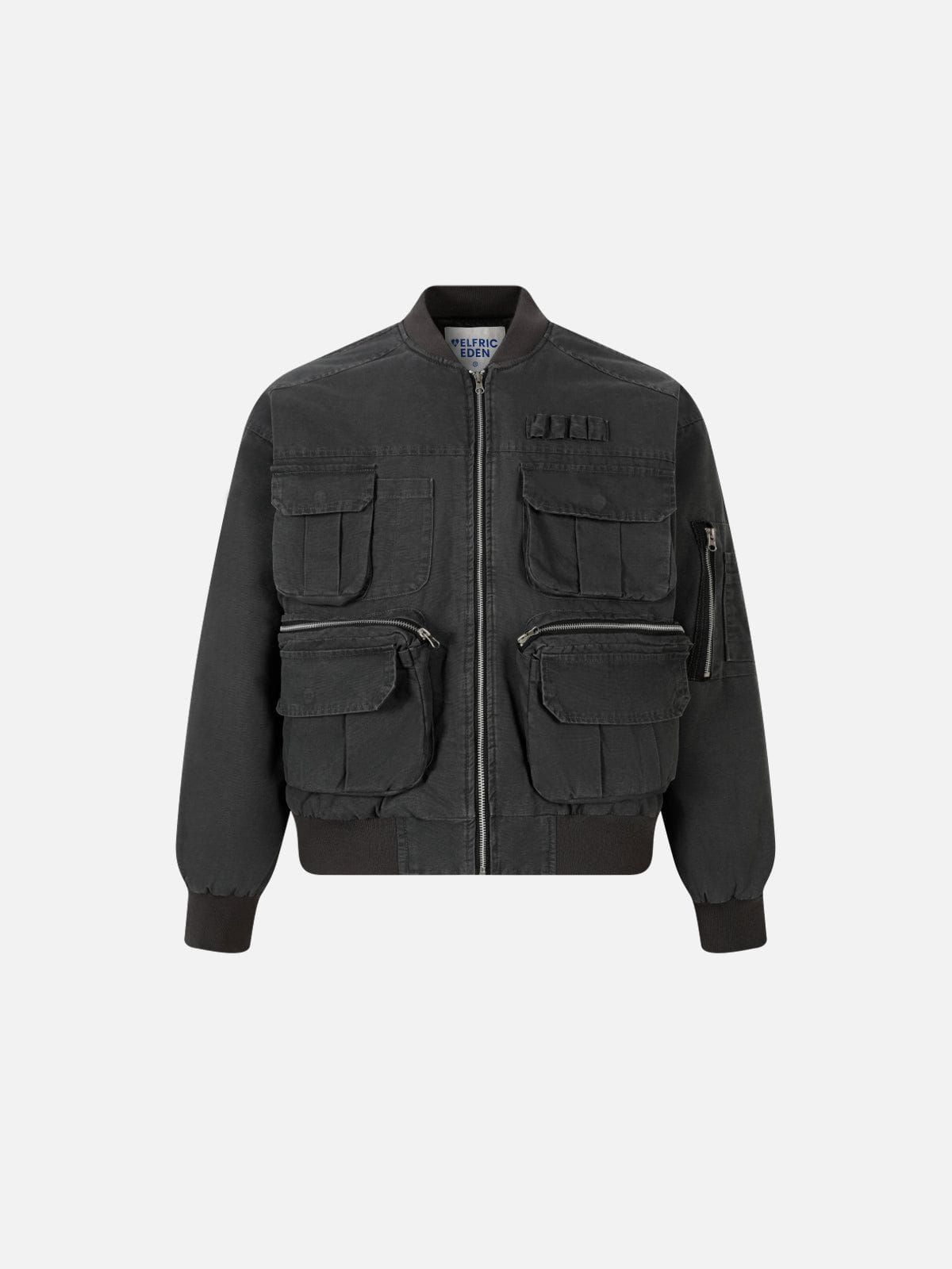 Featuring an expertly tailored oversized silhouette. the Multi Pocket Zip Up Bomber Jacket combines modern aesthetics with practical design. Multiple functional pockets offer ample storage while maintaining a clean. streamlined look. The zip-up closure enhances versatility. and the classic bomber style provides timeless appeal. making it a refined choice for elevated casual wear.