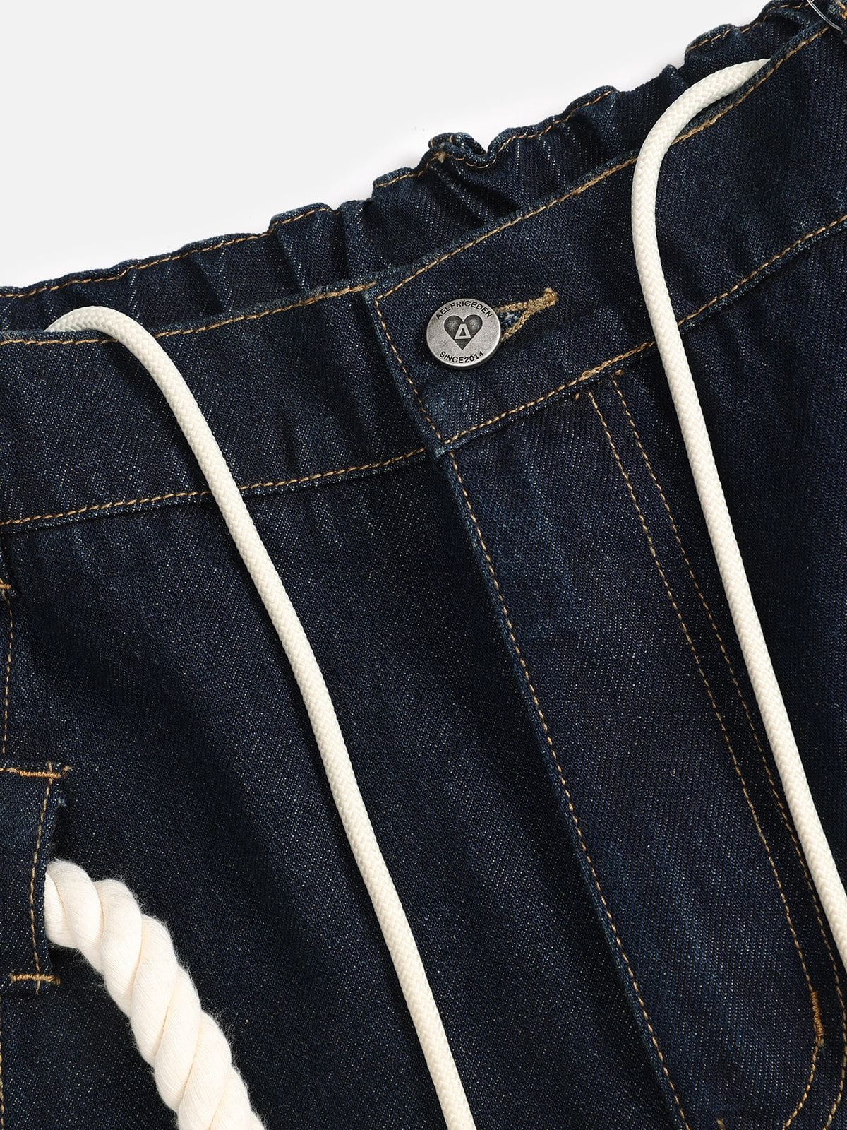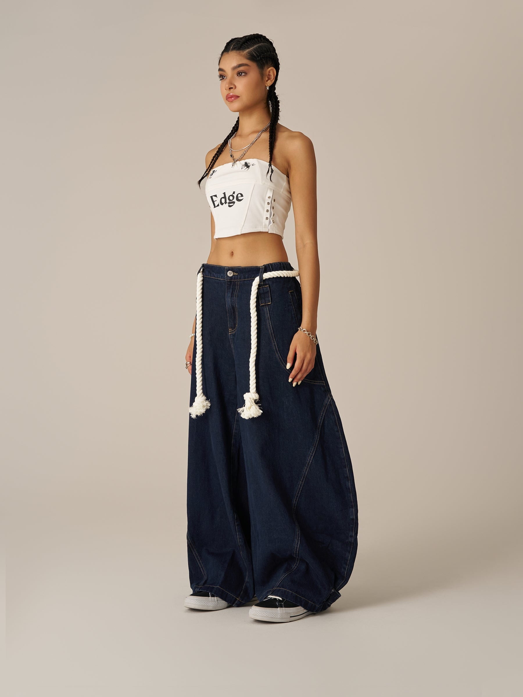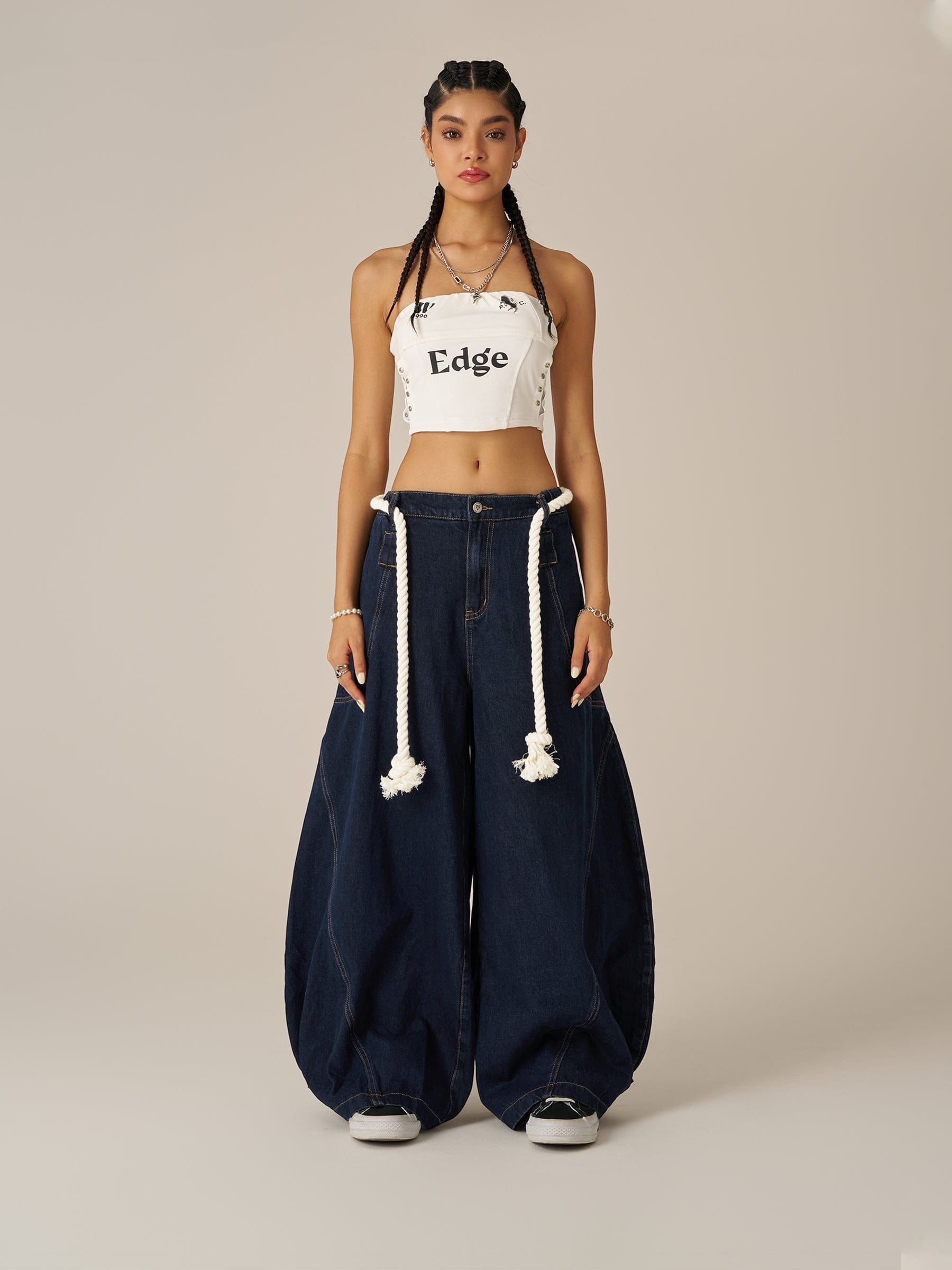Wide-leg jeans incorporate nautical details and are trimmed with a drawstring waist. The Super baaggy barrel fit lets you move freely. and the adjustable leg opening adds practicality. A bold take on casual style.