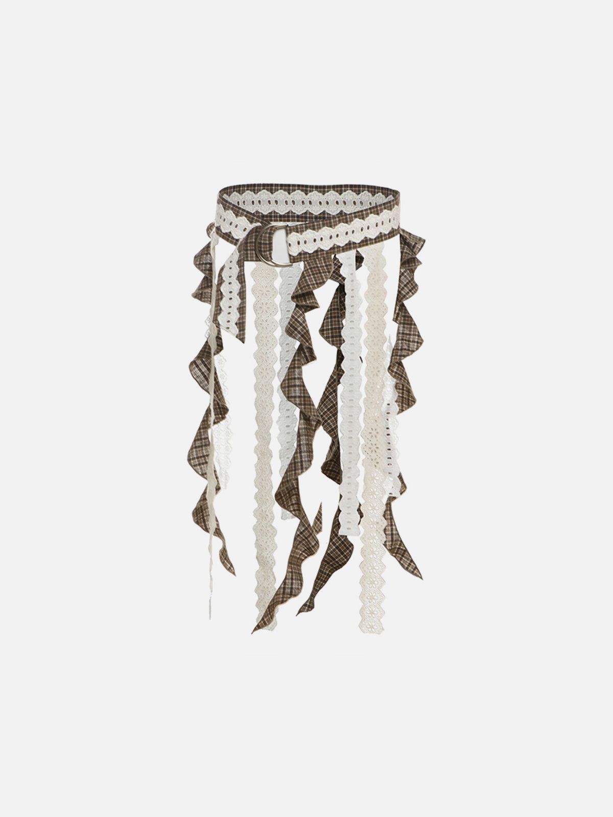 Elevate your outfit with our Lace Plaid Belt. Made with delicate lace and a classic plaid pattern. this belt adds a touch of sophistication to any look. Perfect for both casual and formal occasions. our belt is a versatile addition to your wardrobe.