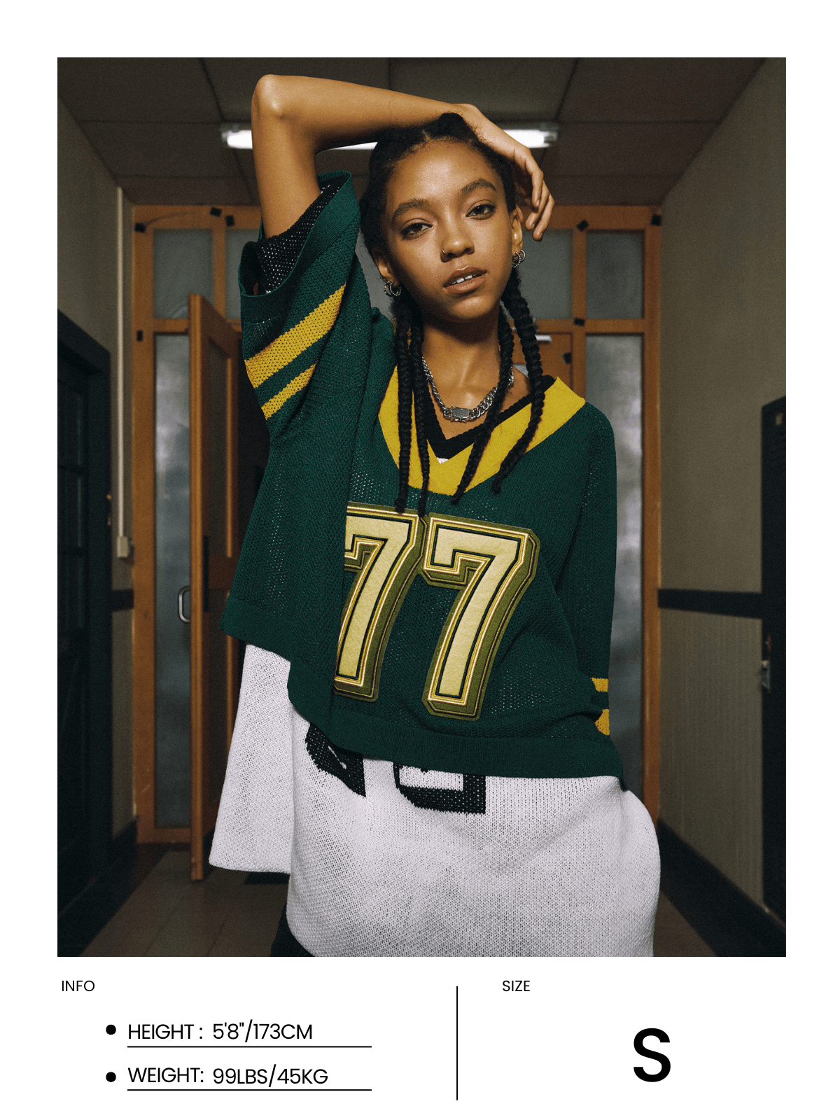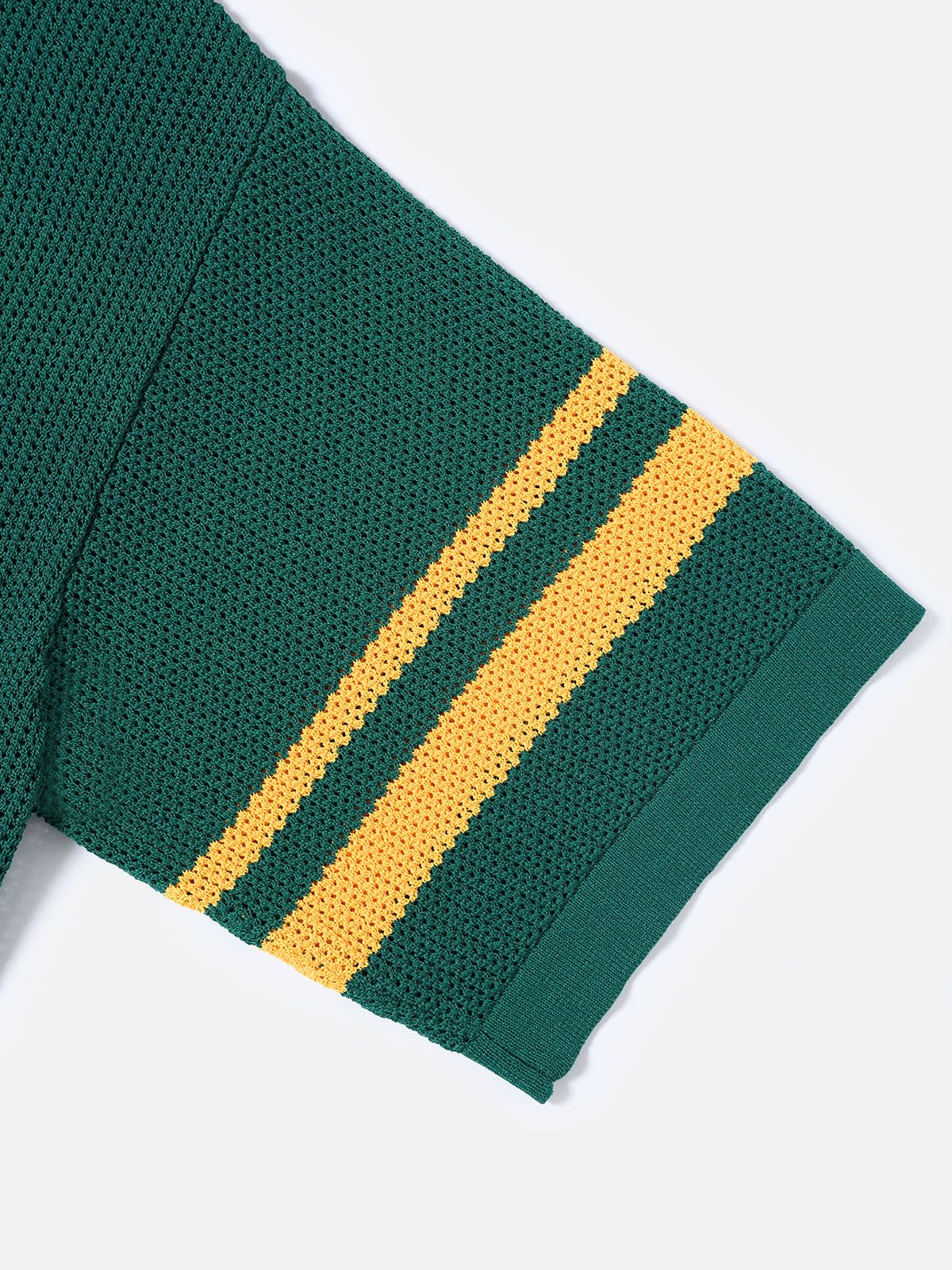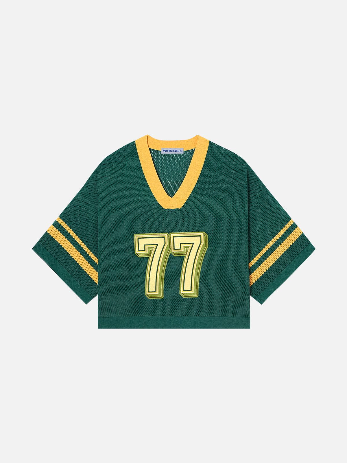Bright yellow meets deep green in a striking contrast that captures the energy of a sunny field a?? fresh. natural. and full of life. The breathable knit fabric with stretch-enhancing perforations offers freedom in every move. while the V-neck adds a touch of effortless ease.
