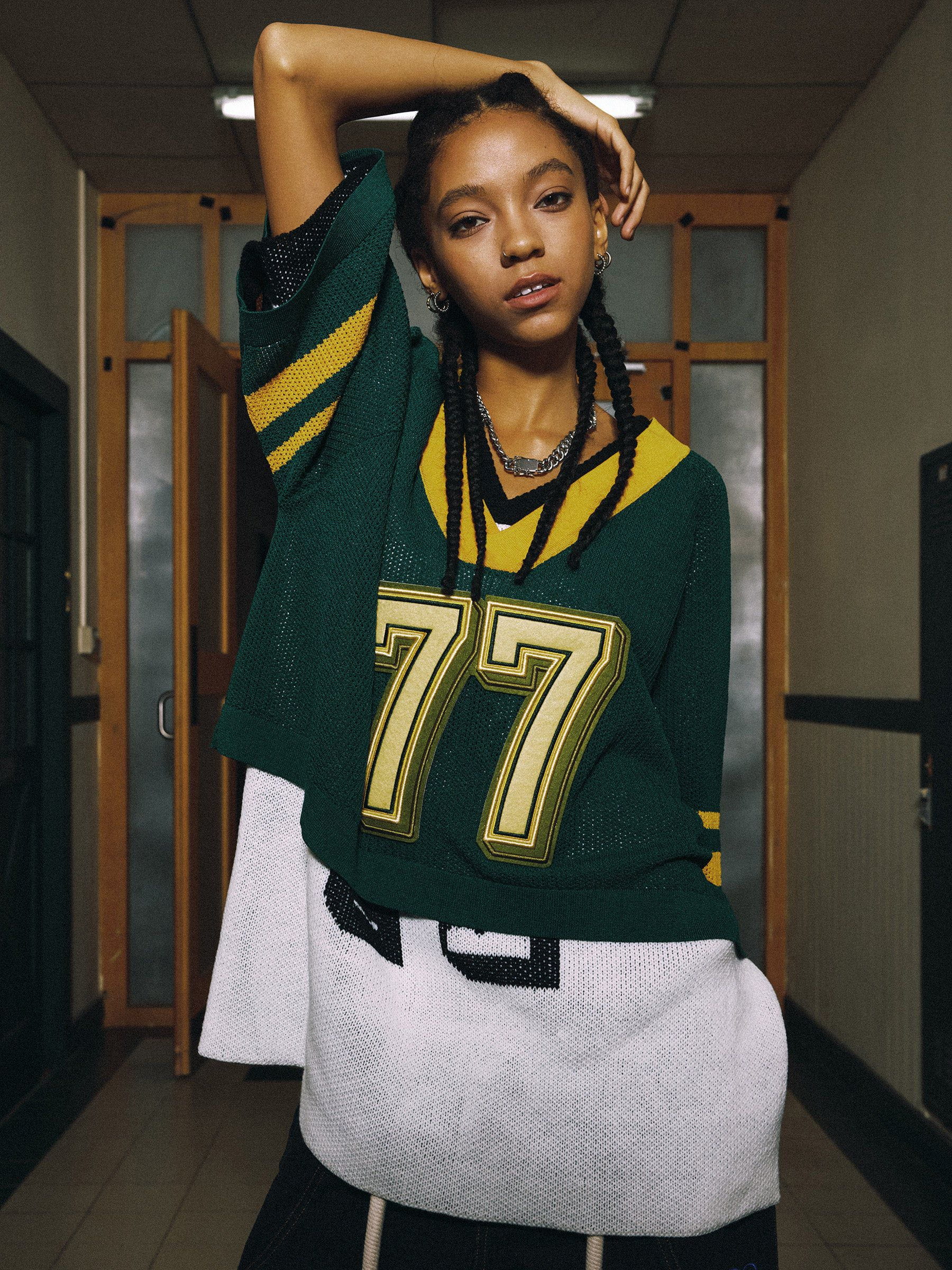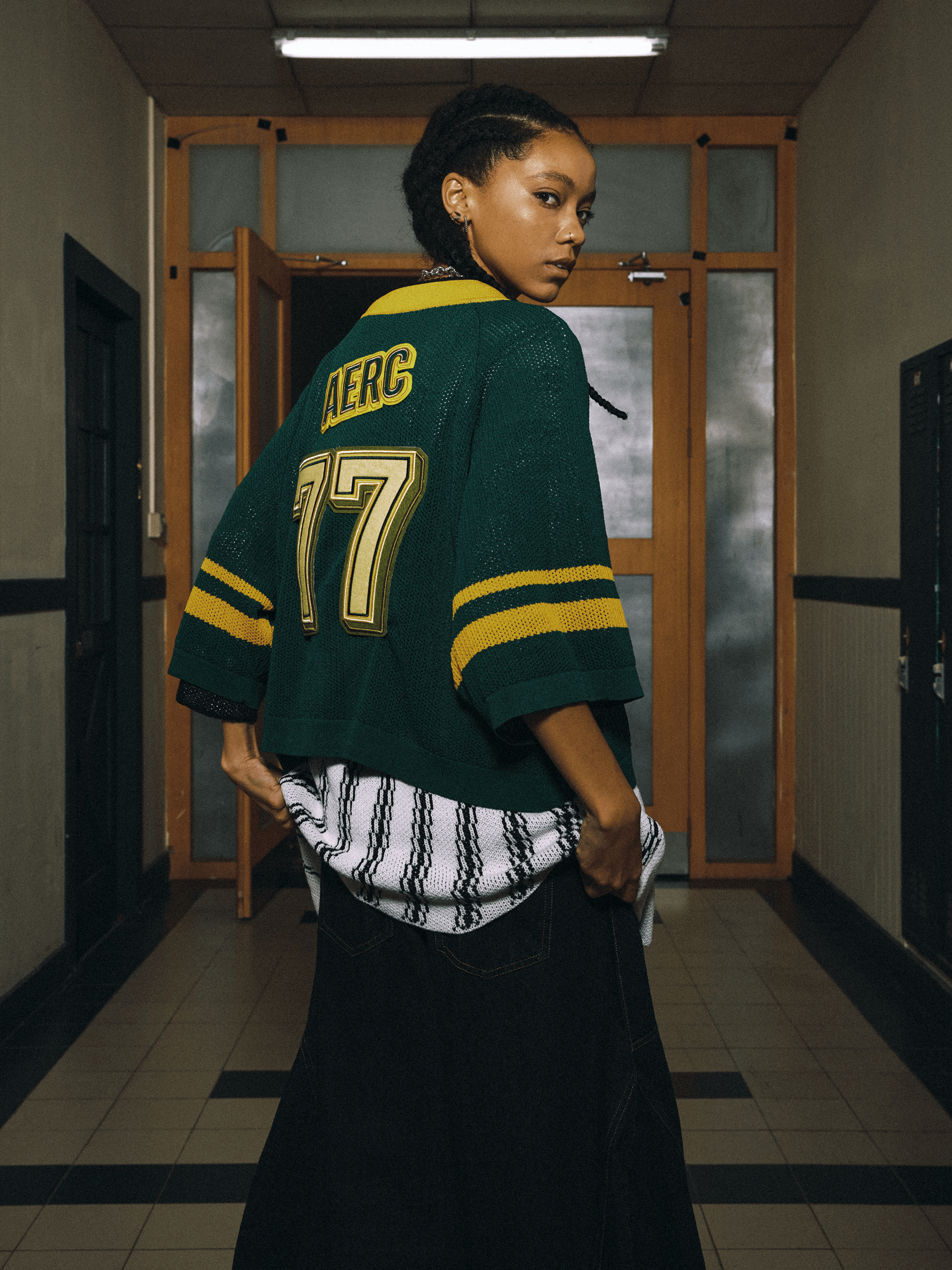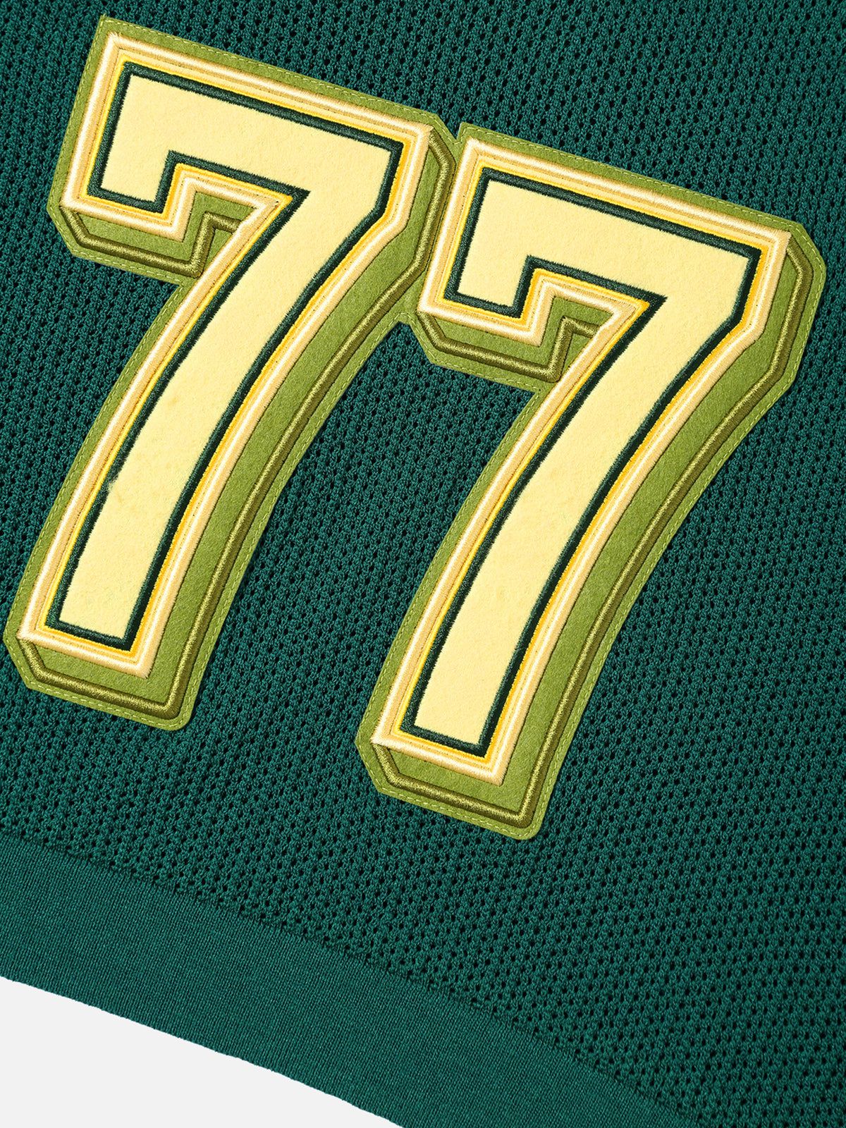 Bright yellow meets deep green in a striking contrast that captures the energy of a sunny field a?? fresh. natural. and full of life. The breathable knit fabric with stretch-enhancing perforations offers freedom in every move. while the V-neck adds a touch of effortless ease.