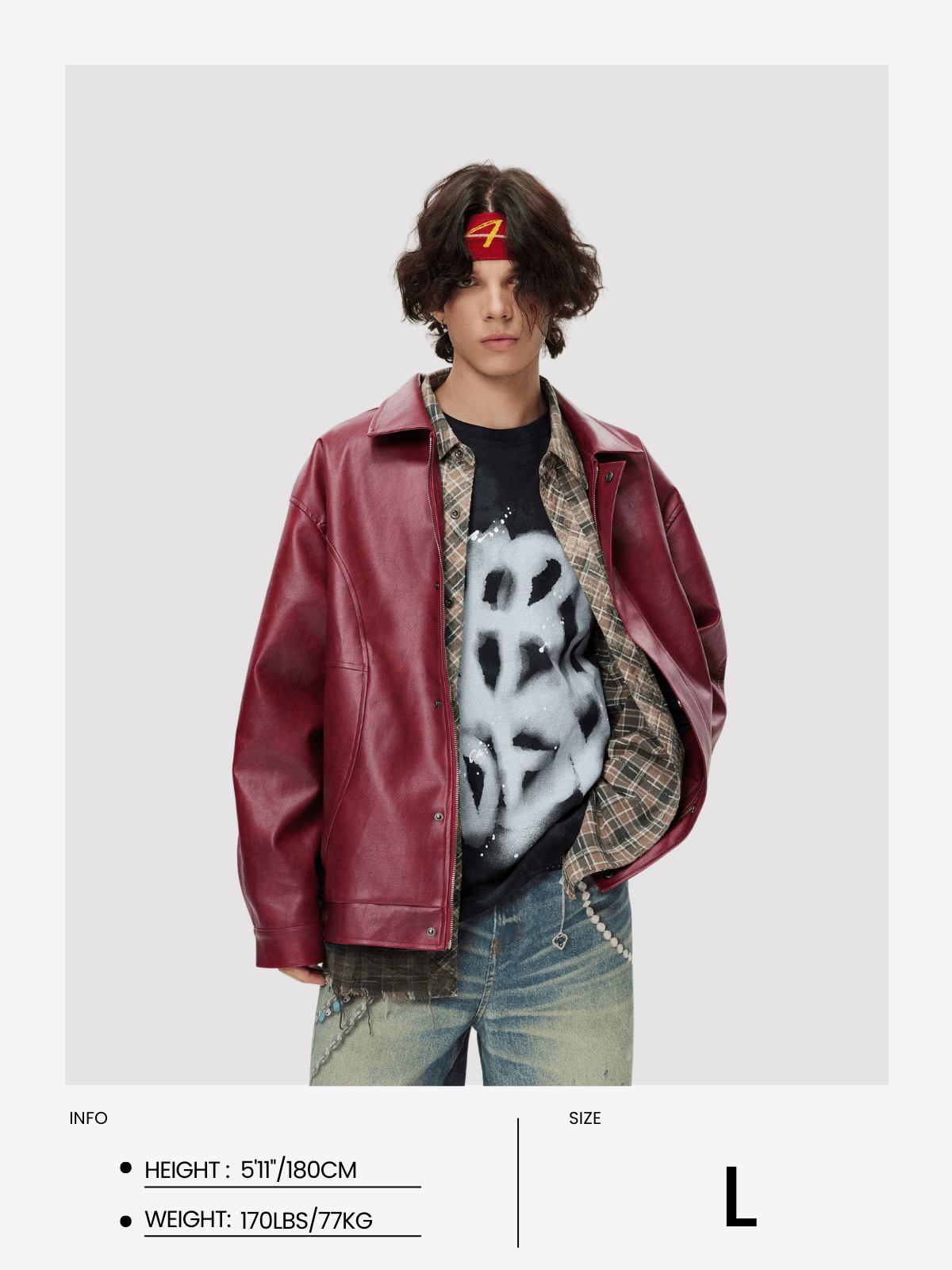 This eye-catching jacket is characterized by a retro burgundy color. Its strong sense of weight reminds you of the elegance of the retro era; while the modern design gives it a fashionable atmosphere. It is made of high-quality artificial leather with textured embellishments. Adds a unique texture. This jacket combines the perfect balance of modern and retro. showing the charm of both fashion and elegance.