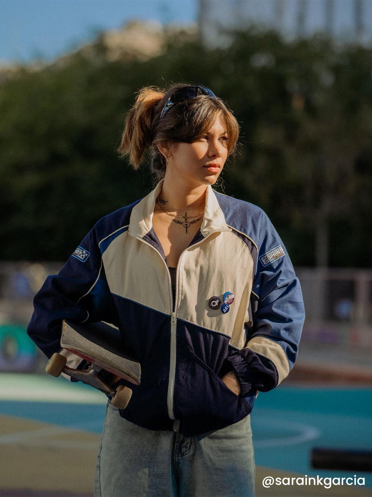 This Color block Medallion Jacket brings you a whole new experience. The combination of retro and comfortable. retro color stitching design. plunging sleeve design is more inclusive.??Detachable Medallion??adds a sense of design.