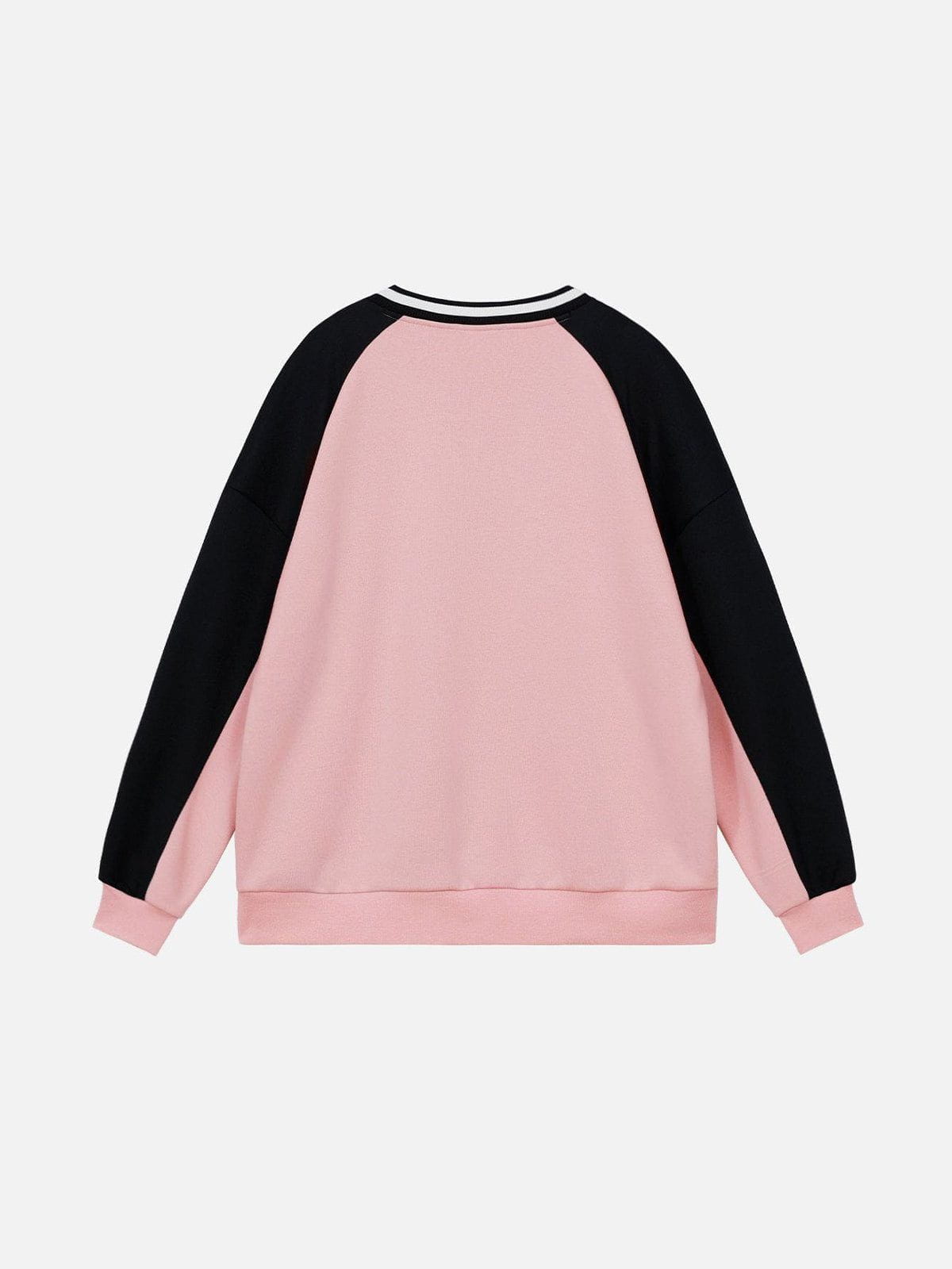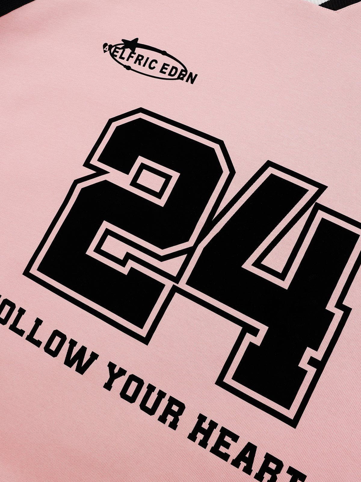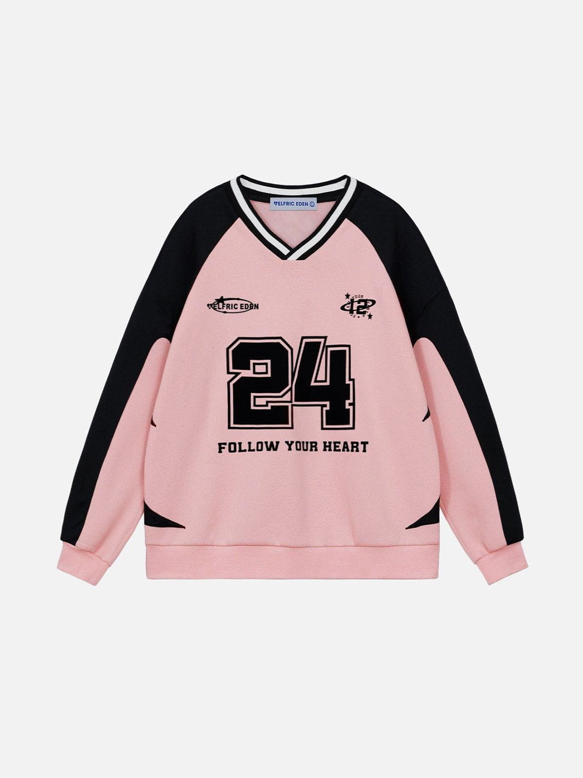 Elevate your fashion game with our upgraded V-neck sweatshirt. blending sporty casual vibes with a chic twist. The perfect fusion of pink and black adds a bold statement to your look. redefining the classic jersey style for ultimate versatility.