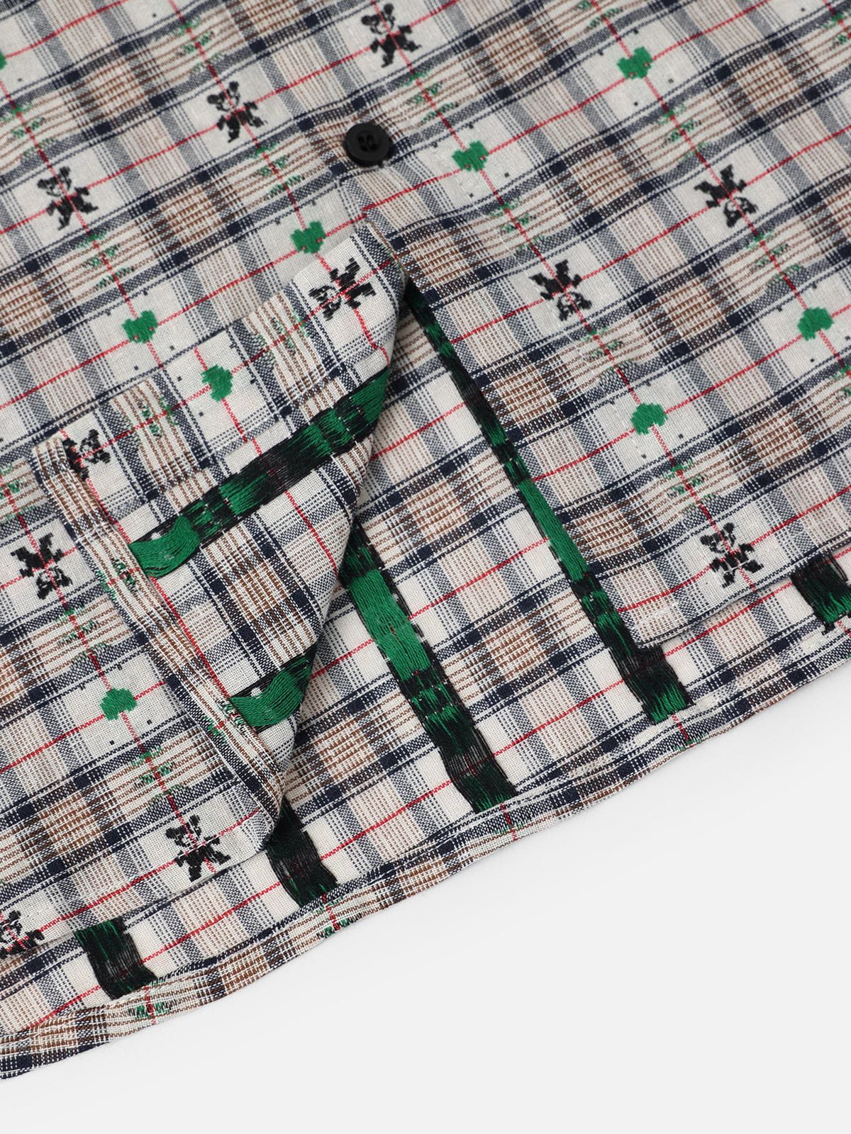 This Aelfric Eden short sleeve shirt features a unique crochet design on the chest. adding a touch of style to the classic plaid pattern. Expertly crafted and versatile. this shirt is perfect for elevating any casual or formal outfit.