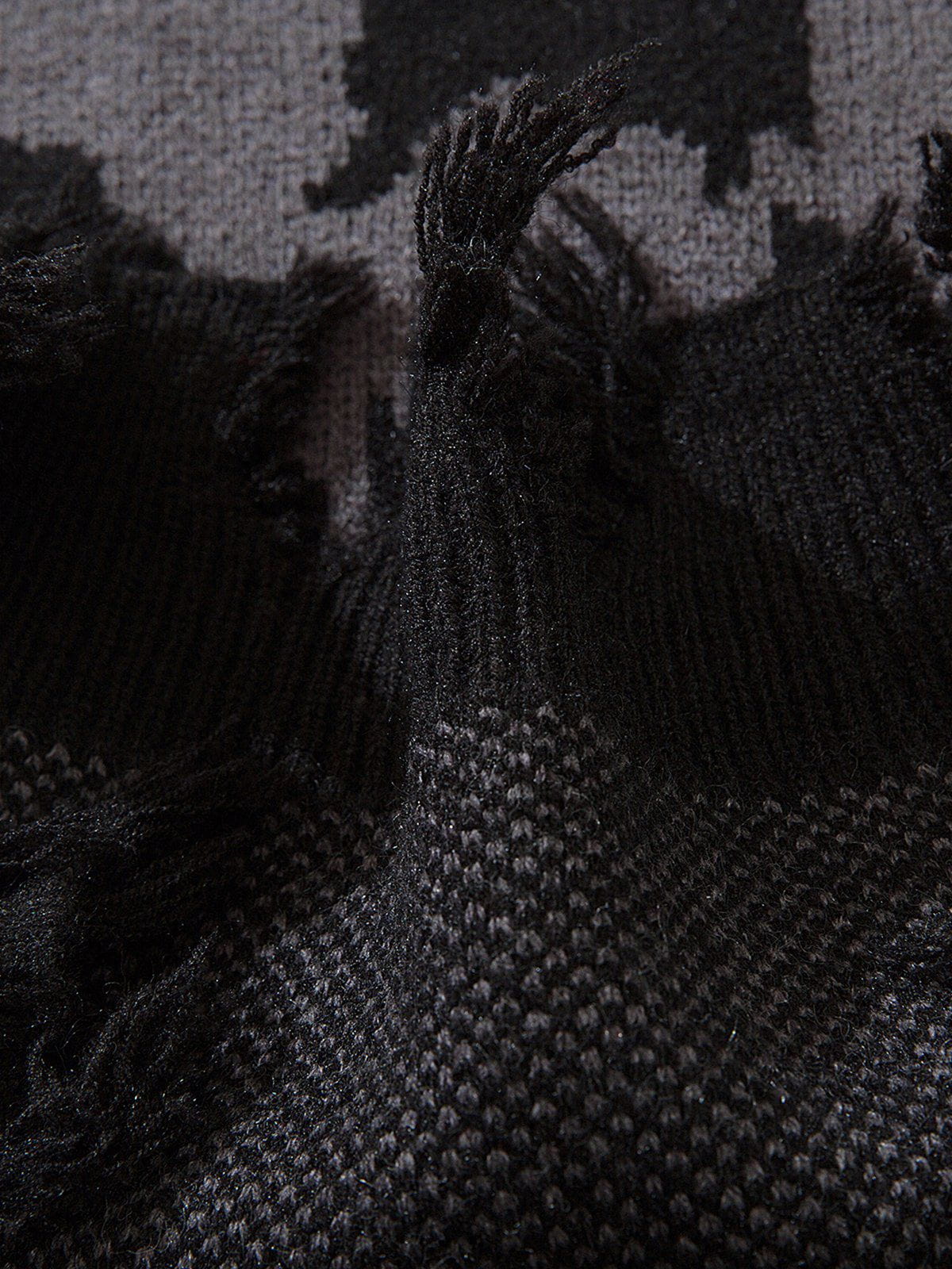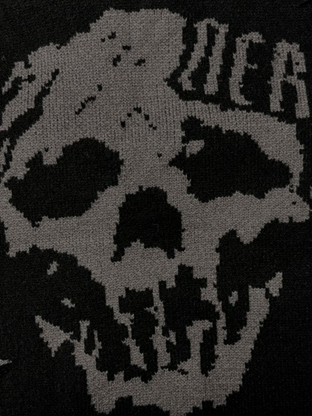 This sweater seamlessly blends a striking skull graphic with distressed details. showcasing a unique texture and street-ready vibe while ensuring both comfort and style.
