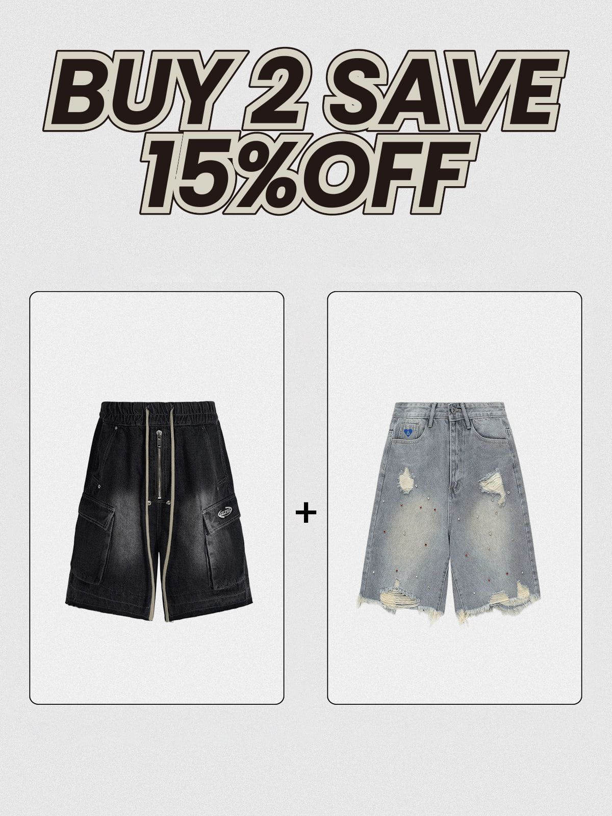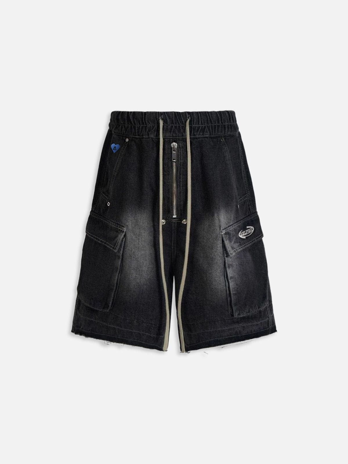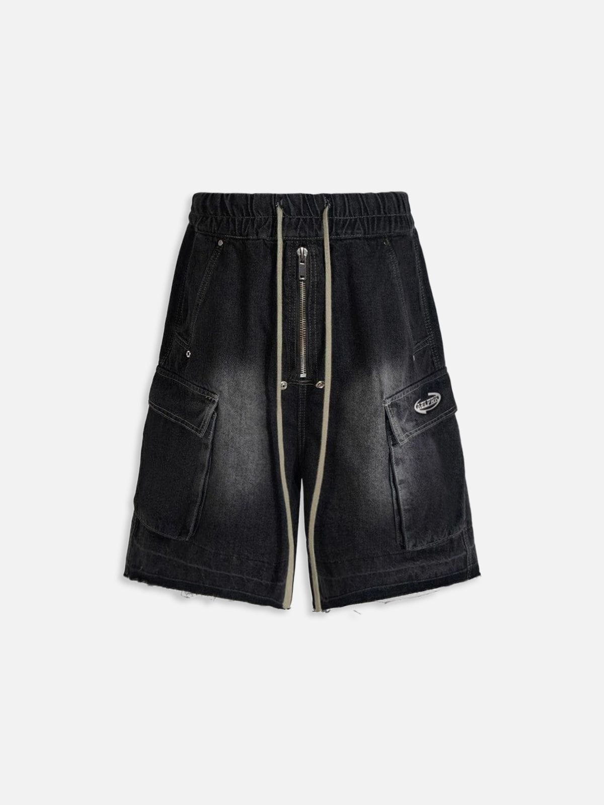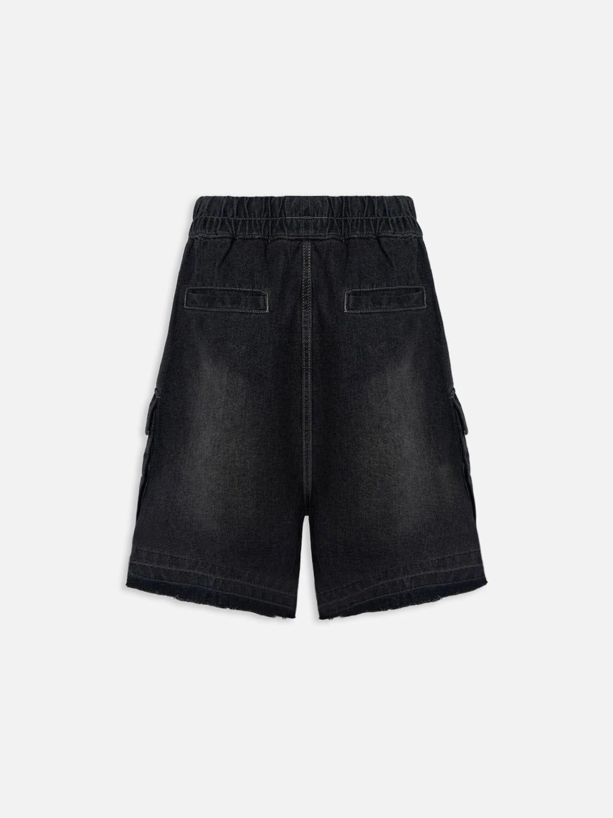 Get ready to stand out in the crowd with the Jorts! The unique black wash. combined with drawstring and zipper details. creates a simple yet stylish design. Multiple pockets make these denim shorts perfect for any occasion. Get ready to be the ultimate trendsetter in 2025!