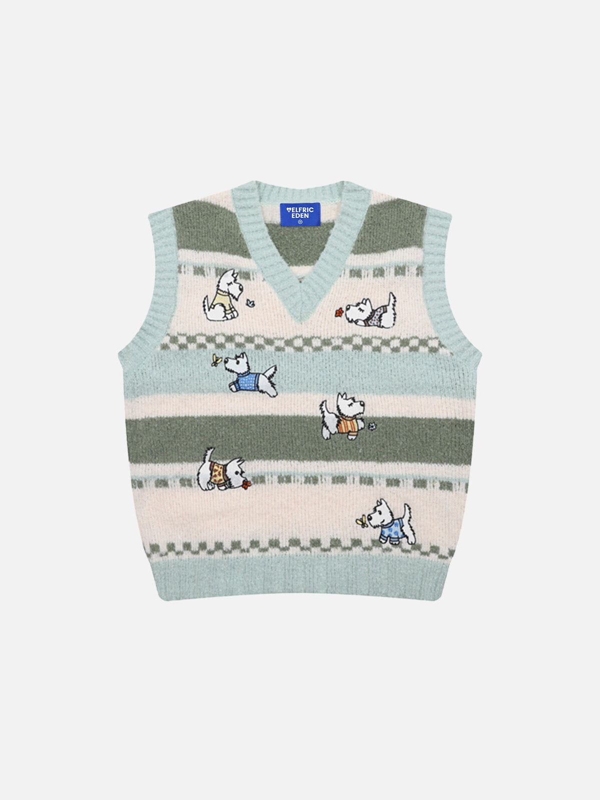 Featuring a playful cartoon design of a West Highland White Terrier. this sweater vest adds a cute and fun touch to any outfit. Soft and comfortable. it’s perfect for bringing a cheerful and whimsical vibe to your casual wardrobe.