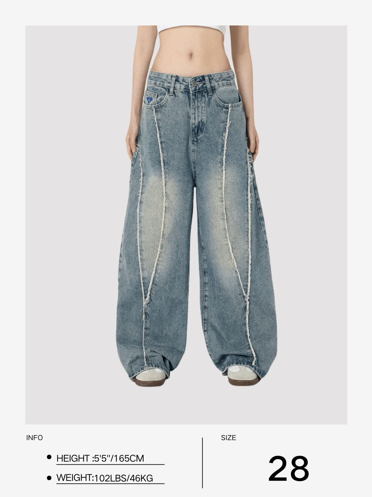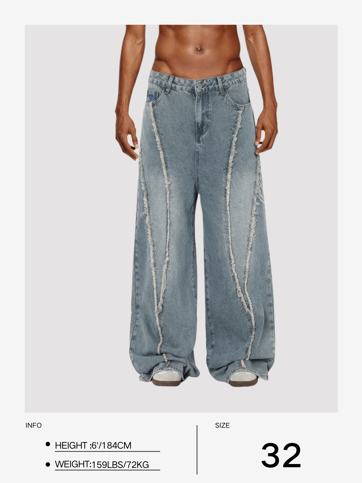 Step out of the ordinary with these Aelfric Eden Fringe Baaggy Jeans! With a baaggy and comfortable fit. plus a simple and stylish frayed patchwork design. these jeans are perfect for any occasion. The vintage wash adds a touch of coolness to your look. Don’t sacrifice style for comfort. get the best of both worlds with these jeans.