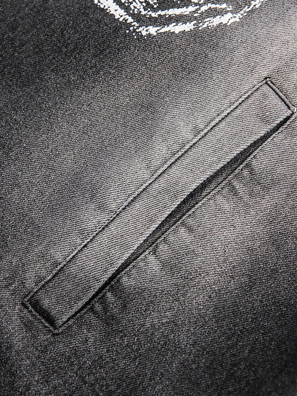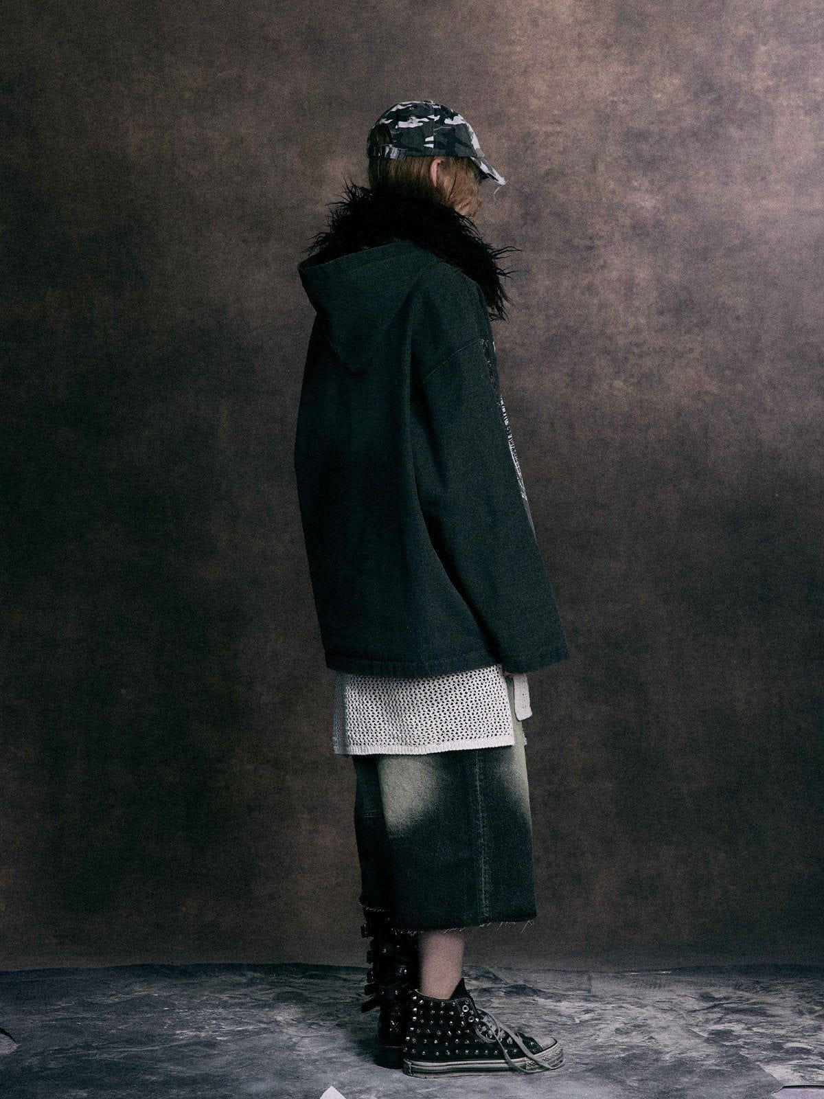 This hoodie features a heavily washed texture that brings a street-inspired edge. highlighted by a bold numerical print at the center. The fringe detail runs from the cuffs to the shoulders. adding a raw and artistic flair. It perfectly combines laid-back comfort with a trendy street style.