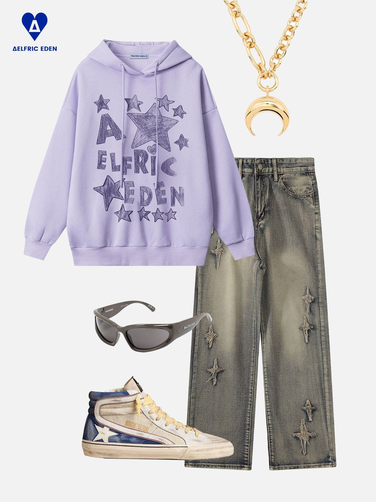 This hoodie features a playful sketch-style star graffiti print. complemented by bold Aelfric Eden lettering. Its relaxed design makes it perfect for everyday wear. effortlessly blending casual comfort with artistic flair. This piece is ideal for those who appreciate unique street-inspired style.