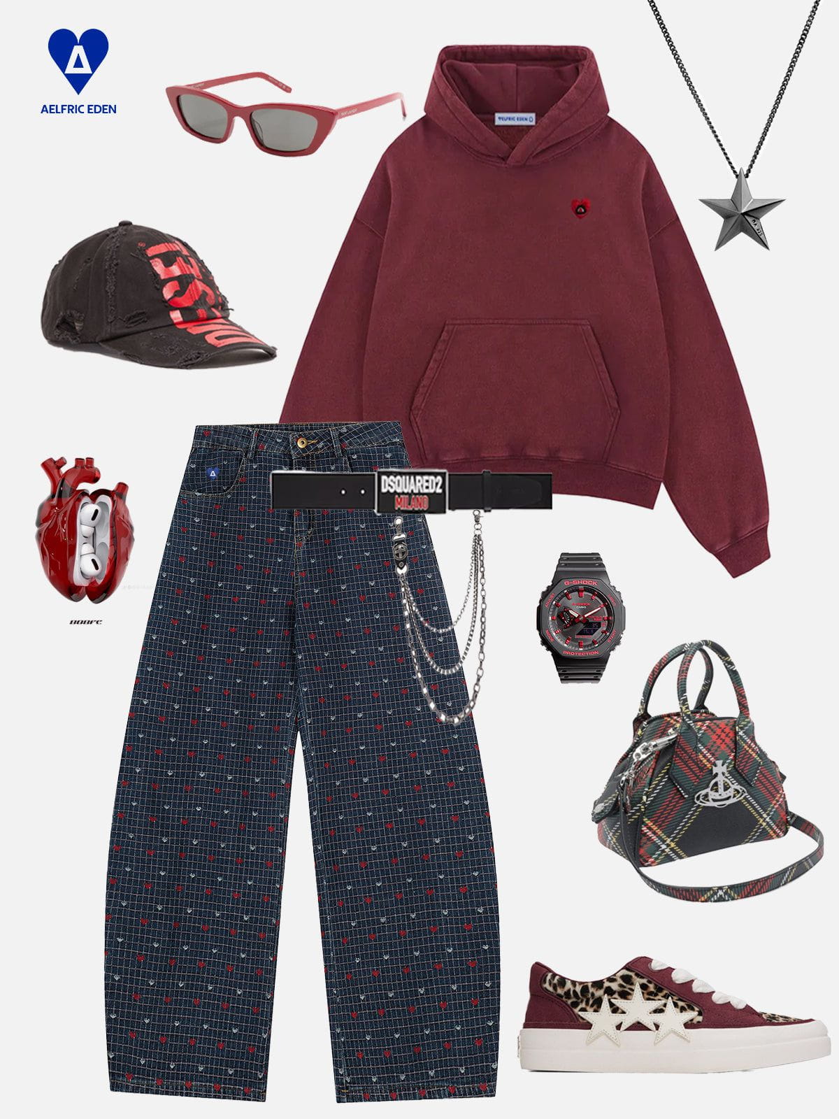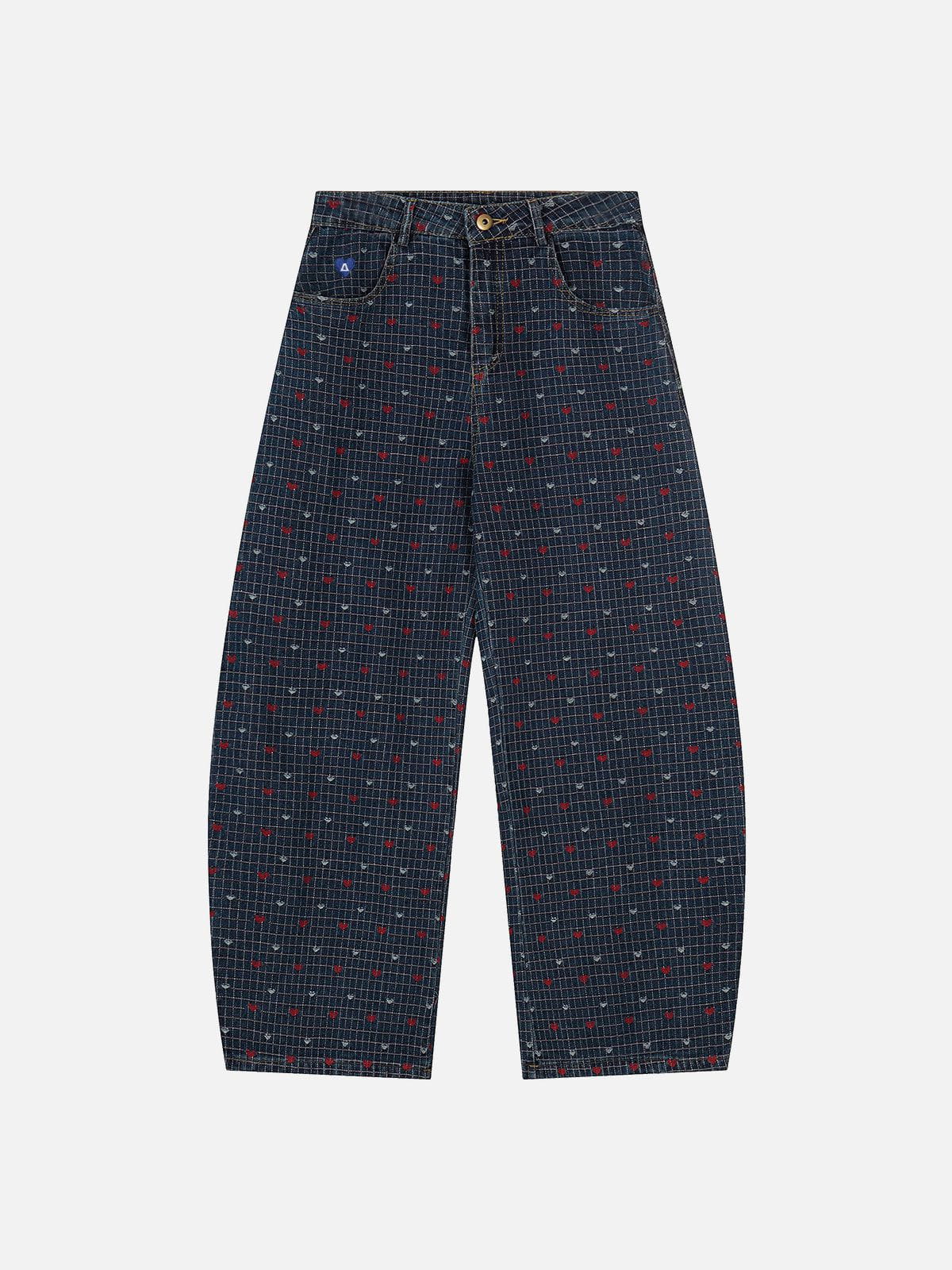 Add a playful and stylish touch to your wardrobe with the Aelfric Eden Heart Polka Dot Baaggy Barrel Jeans. featuring charming embroidered heart details. The intricate embroidery enhances the relaxed baaggy fit. creating a unique blend of comfort and eye-catching design. Perfect for expressing your individuality while enjoying effortless wear. these jeans bring a fresh. trendy vibe to any casual outfit.