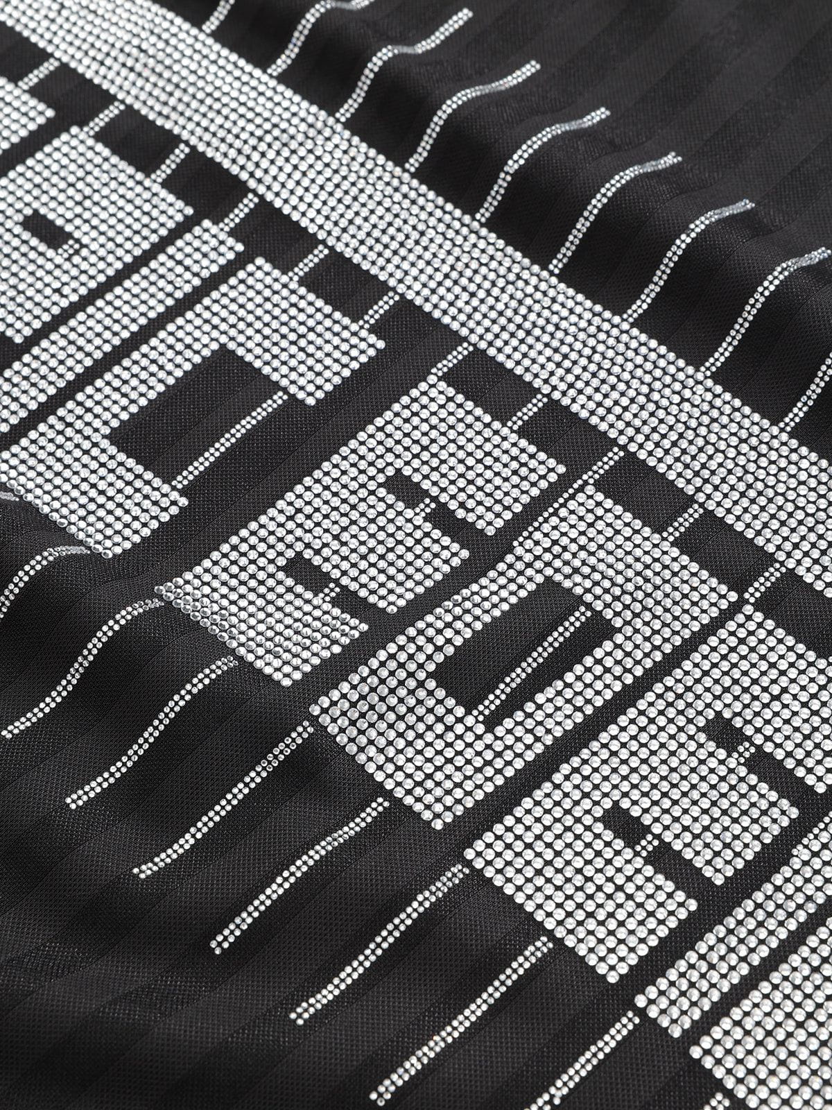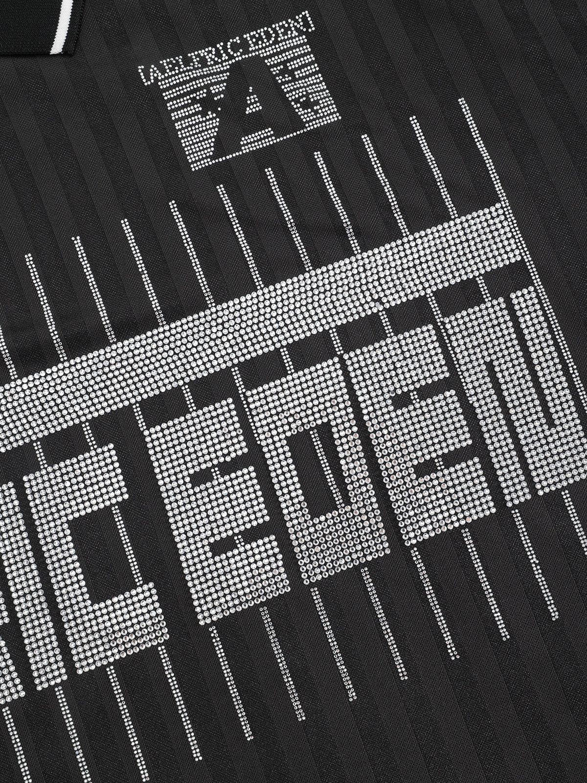Elevate your everyday look with a dazzling twist. This jersey combines classic polo structure with bold streetwear flair. Featuring shimmering rhinestone lettering on the chest and a sleek contrast collar. it’s designed to stand out while staying effortless.