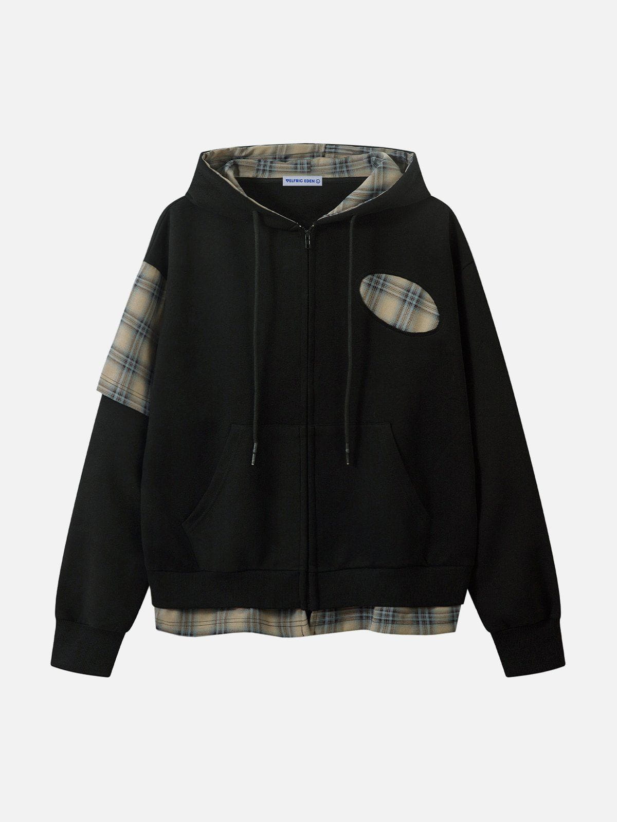 Aelfric Eden Irregular Plaid Patchwork Zip Up Hoodie