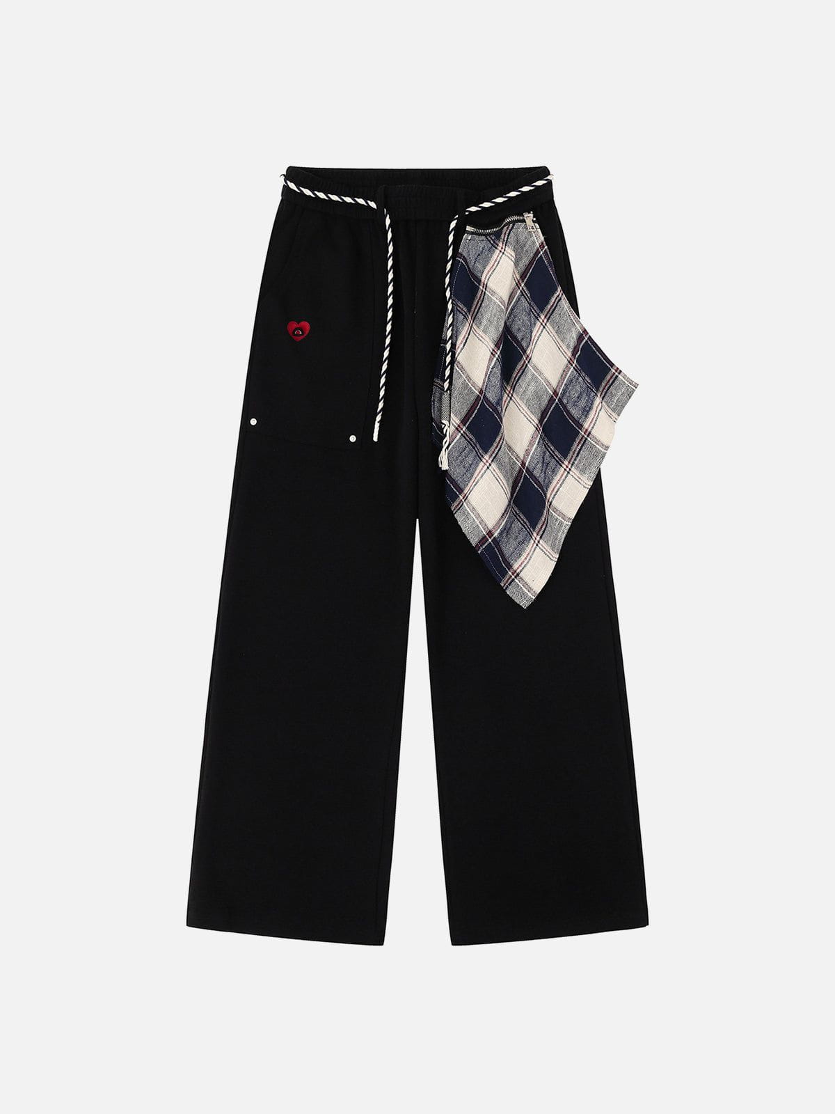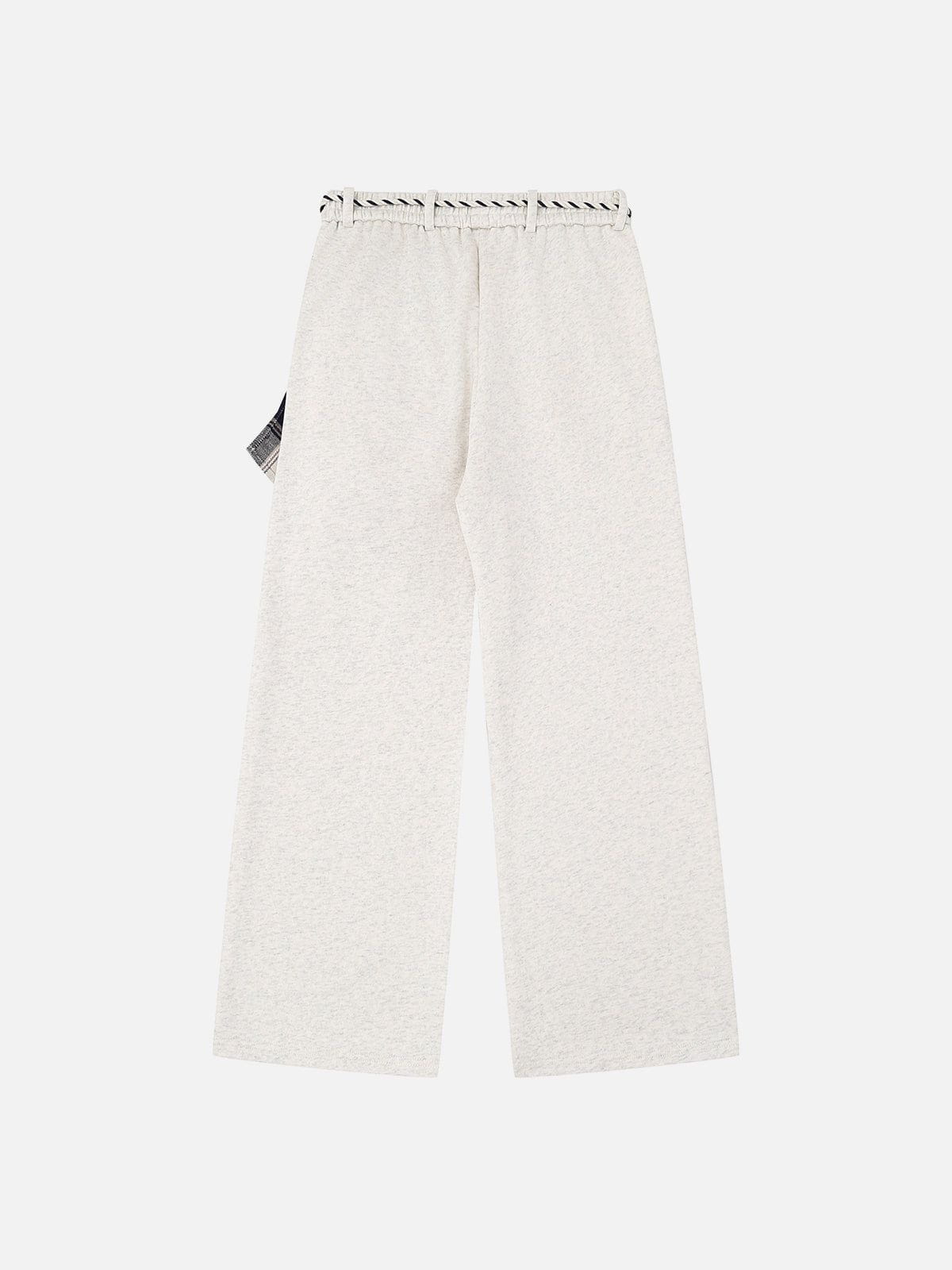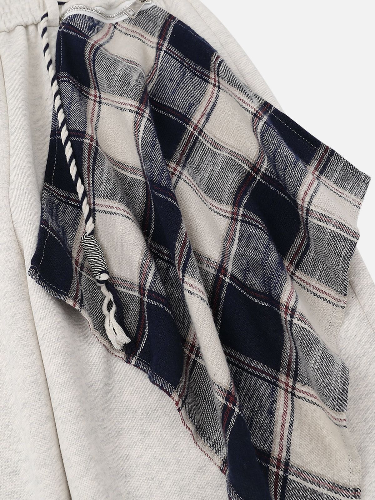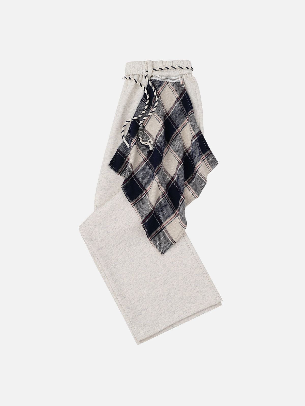 Level up your street fit with these baaggy sweatpants. cut from a soft cotton-poly blend for all-day comfort. The standout detail? A detachable plaid kerchief on the side that lets you switch up your vibe whenever you want. Finished with an oversized barrel silhouette. these pants bring effortless flow and a bold streetwear edge.