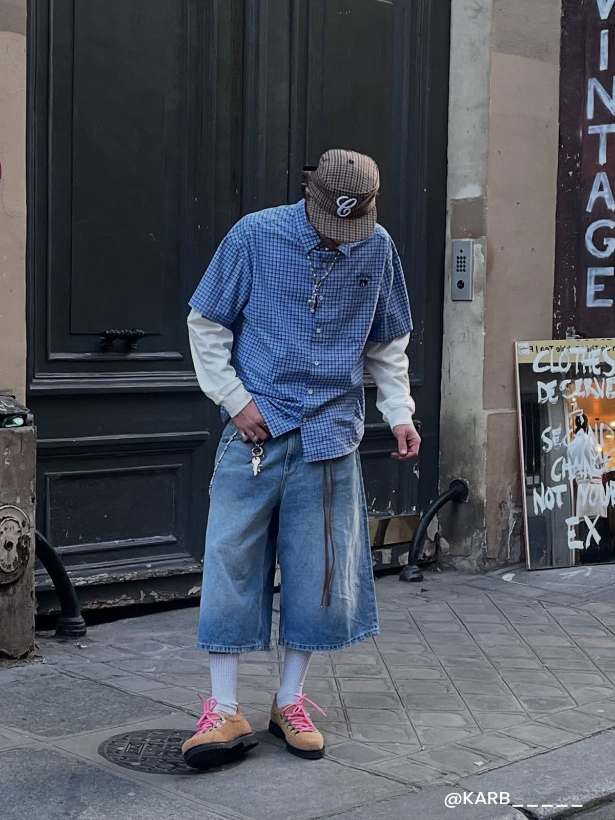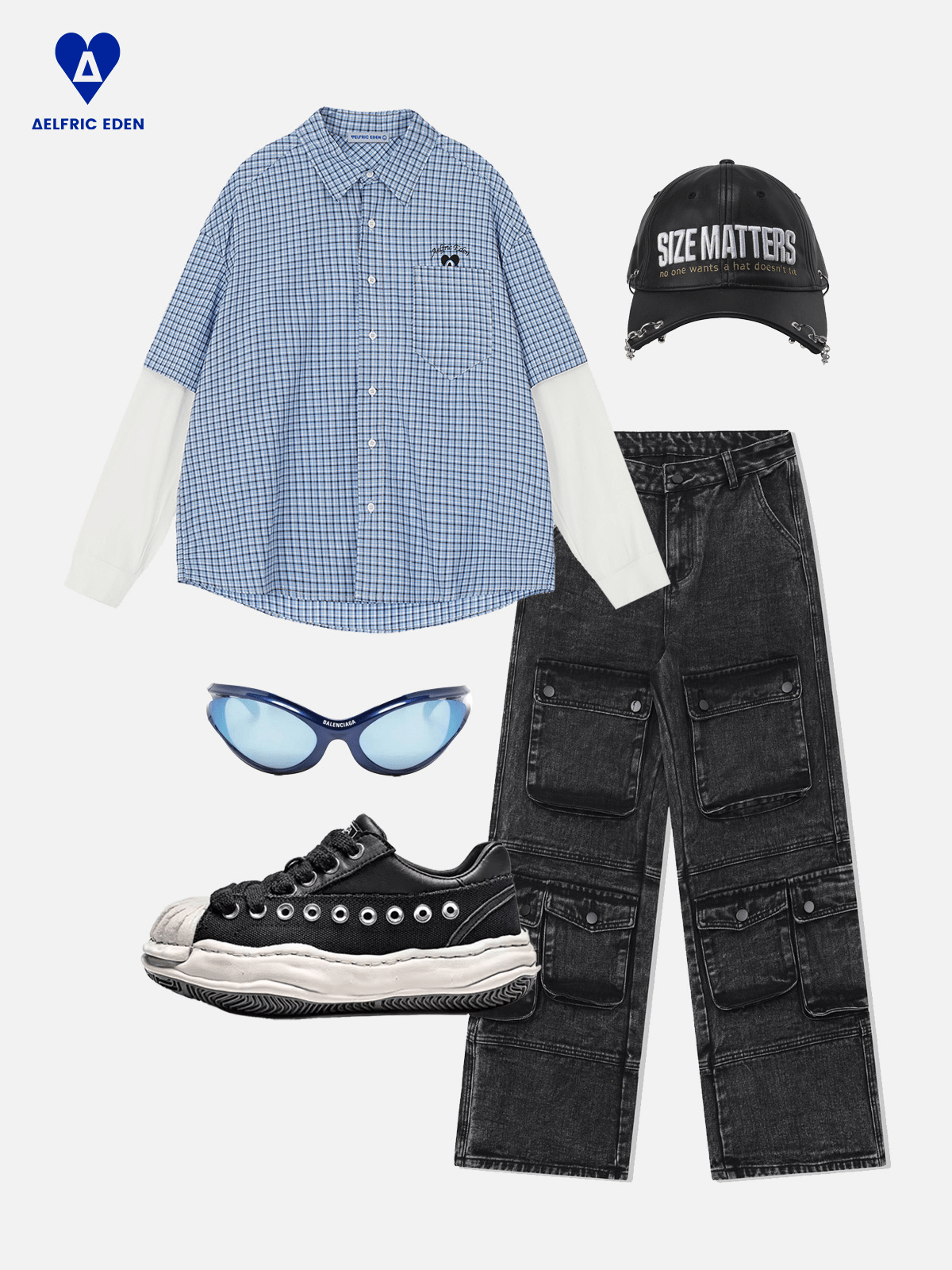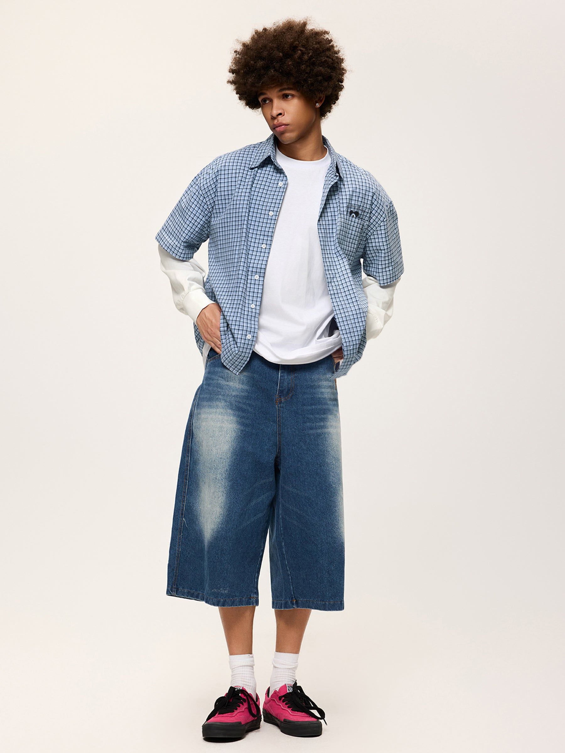 A timeless twist on a classic. This long-sleeve shirt features a crisp blue-and-white color palette with clean. classic plaid patterns. The standout detail. A unique double-layered. two-in-one sleeve design that adds unexpected depth and structure. A perfect fusion of modern utility and preppy style??easy to dress up or down.