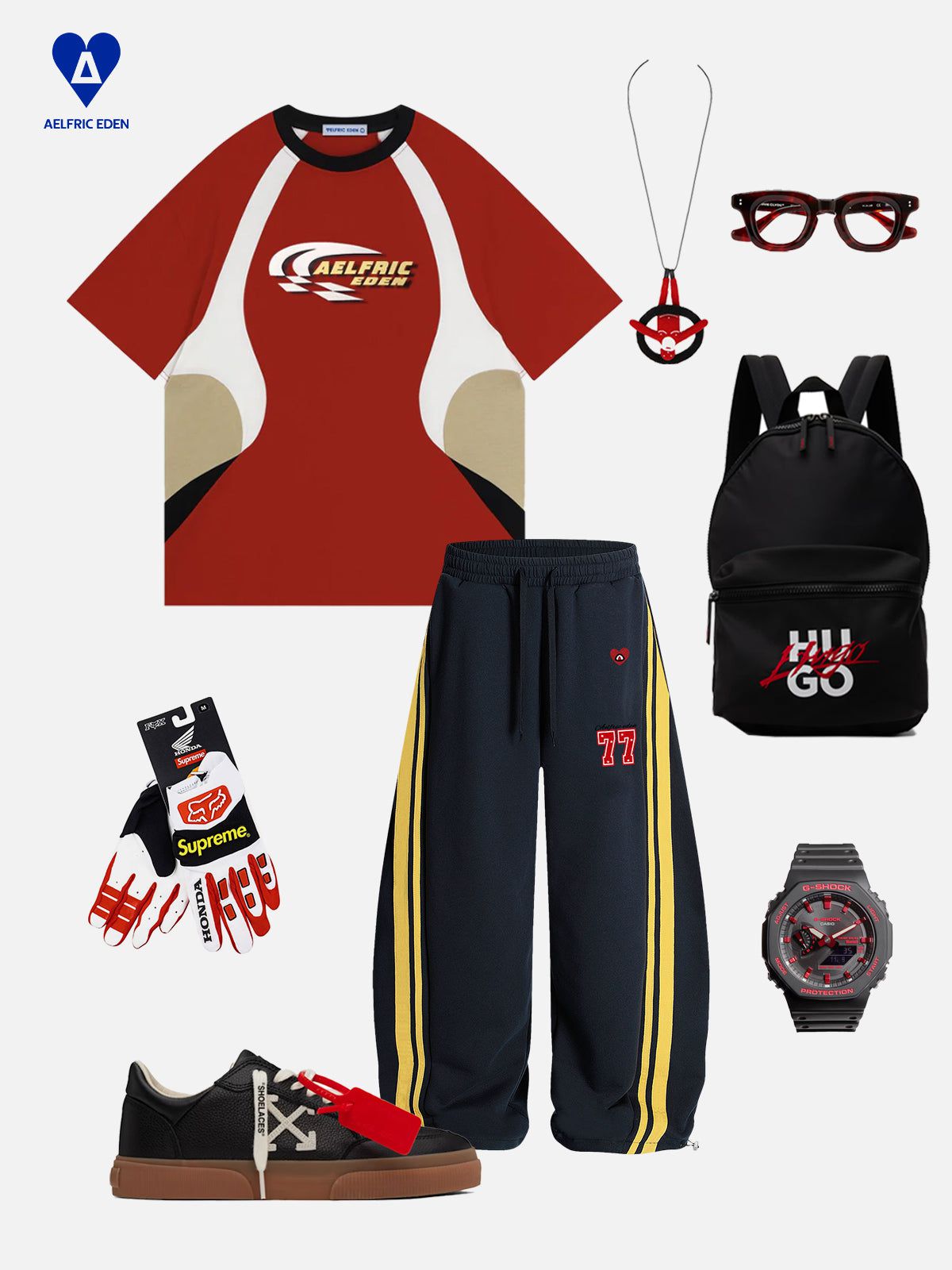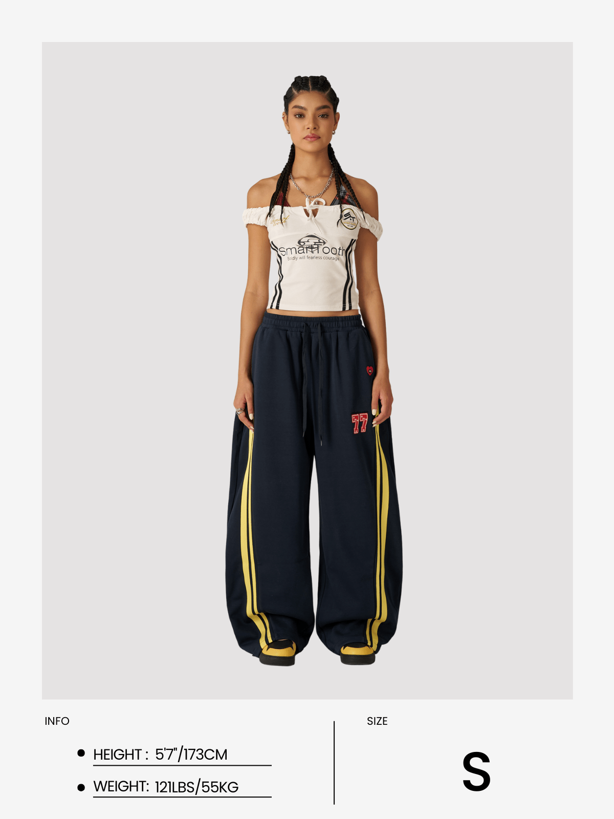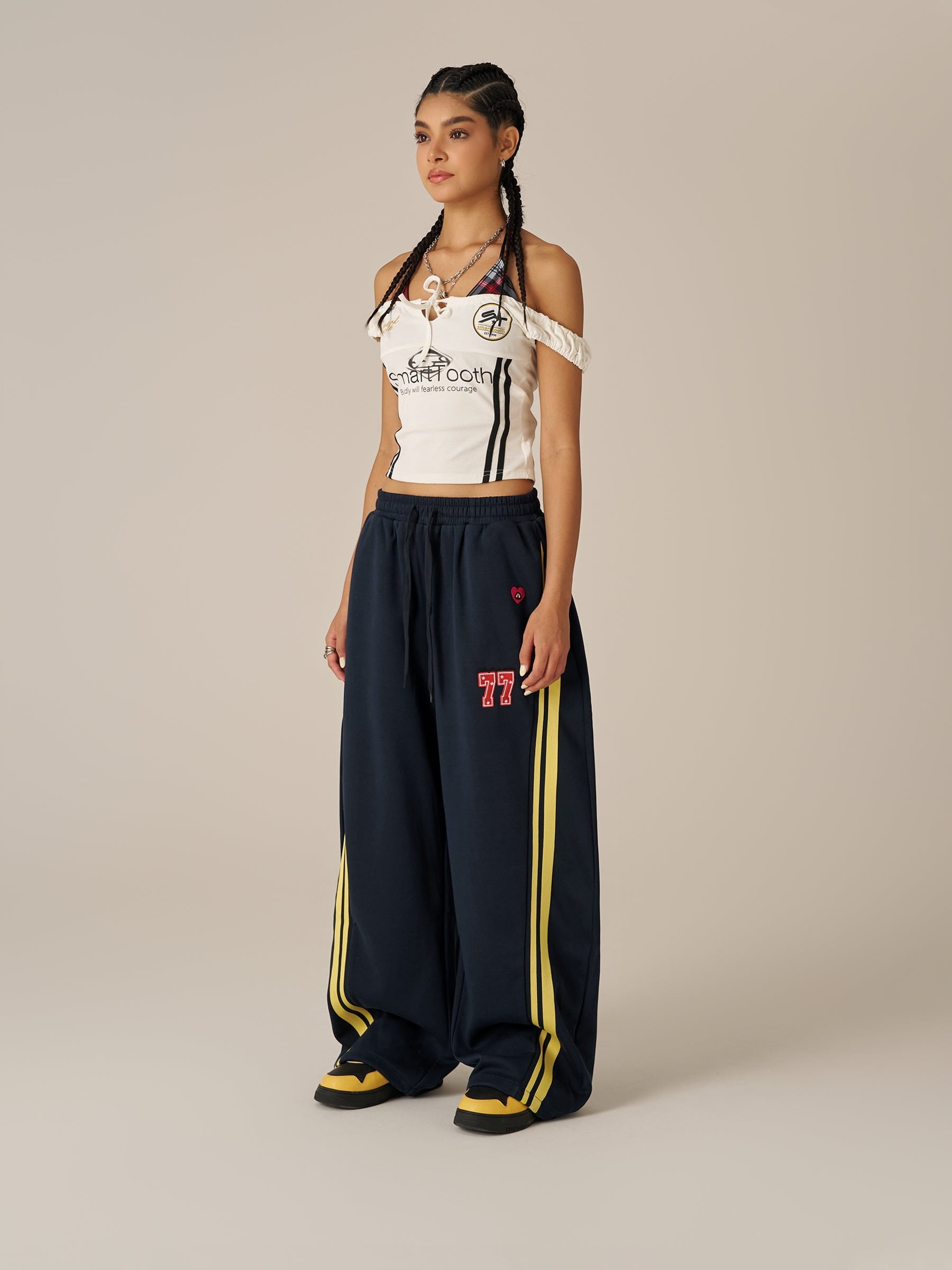 Featuring a clean black base with sharp yellow double-sided stripes. they deliver a retro-sport aesthetic with a modern twist. The red 77 patch and heart logo embroidery add standout contrast and signature identity.??