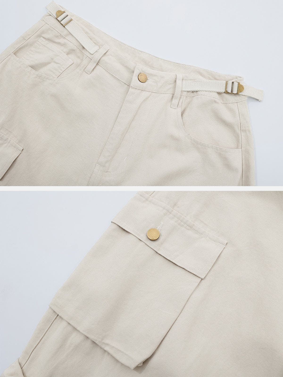 It is a classic cargo pants style with a retro. multi-pocket design. With proper outfit. can be a good way to elongate your thighs. elongate your lower body proportion.