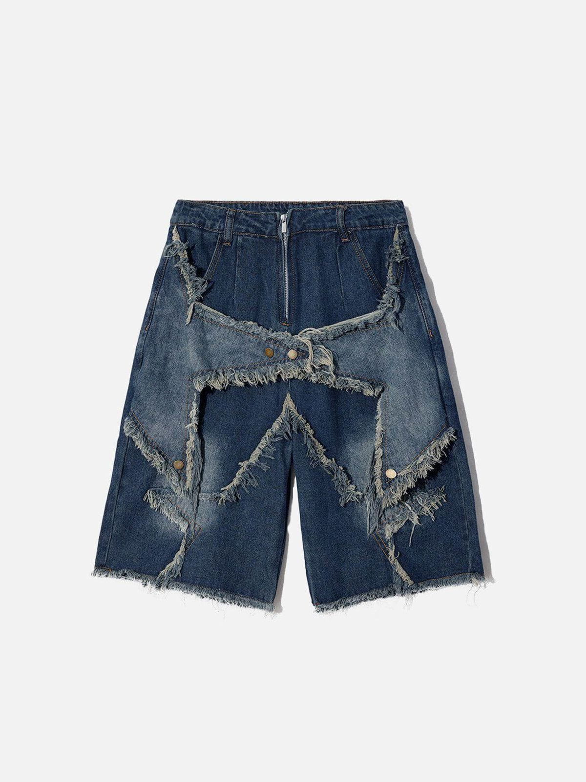 These shorts are made from high-quality denim fabric. which not only makes them durable but also comfortable to wear. The fringe hem detailing adds a unique and eye-catching touch to the shorts. The vintage starry design on the shorts gives them a retro vibe.