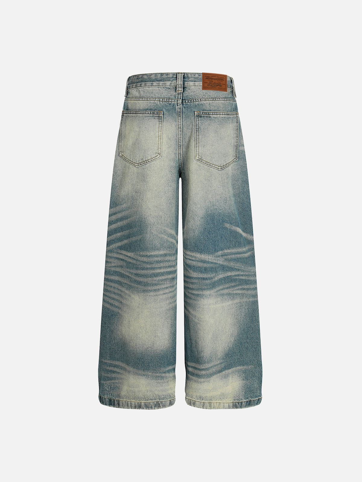 Washed whiskering and subtle wrinkles define these Wrinkle Jeans. creating a lived-in. textured look. The relaxed finish and attention to detail give a modern. effortless streetwear vibe.