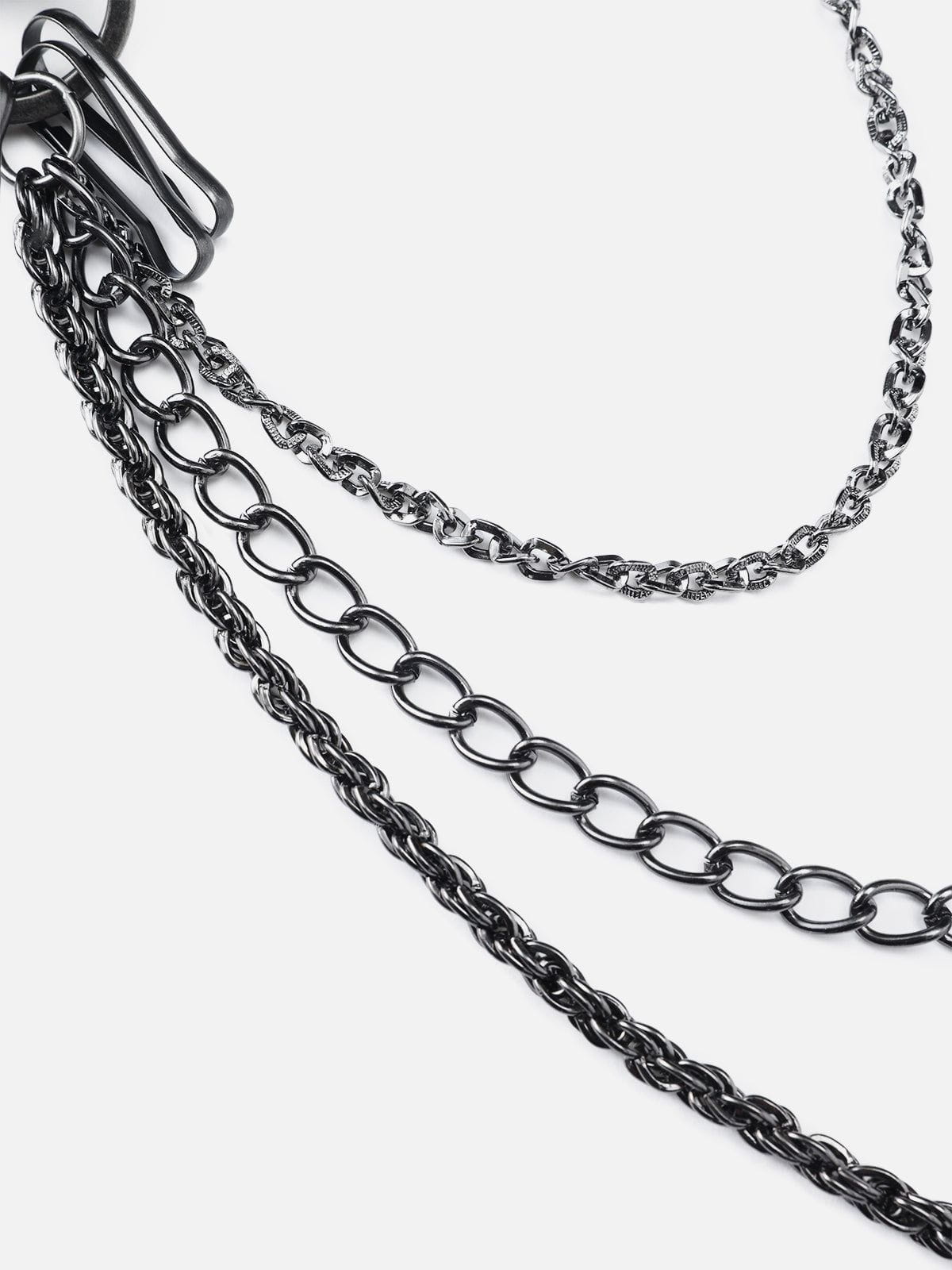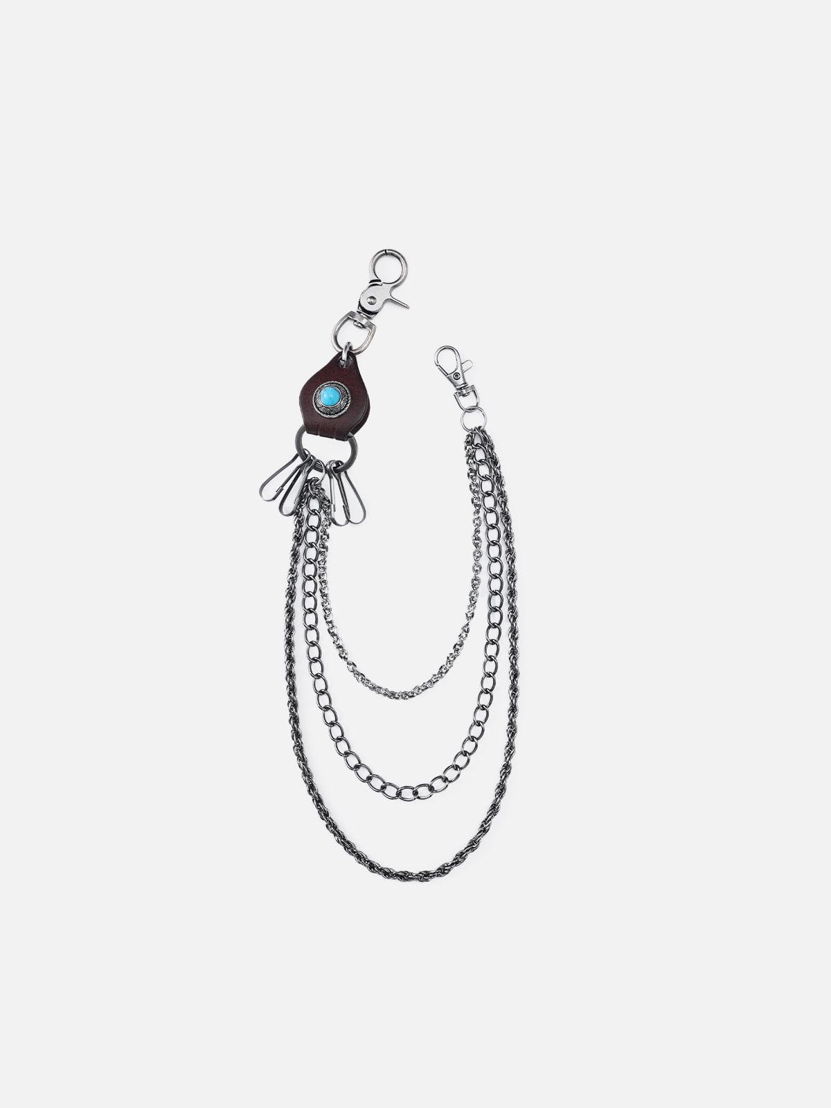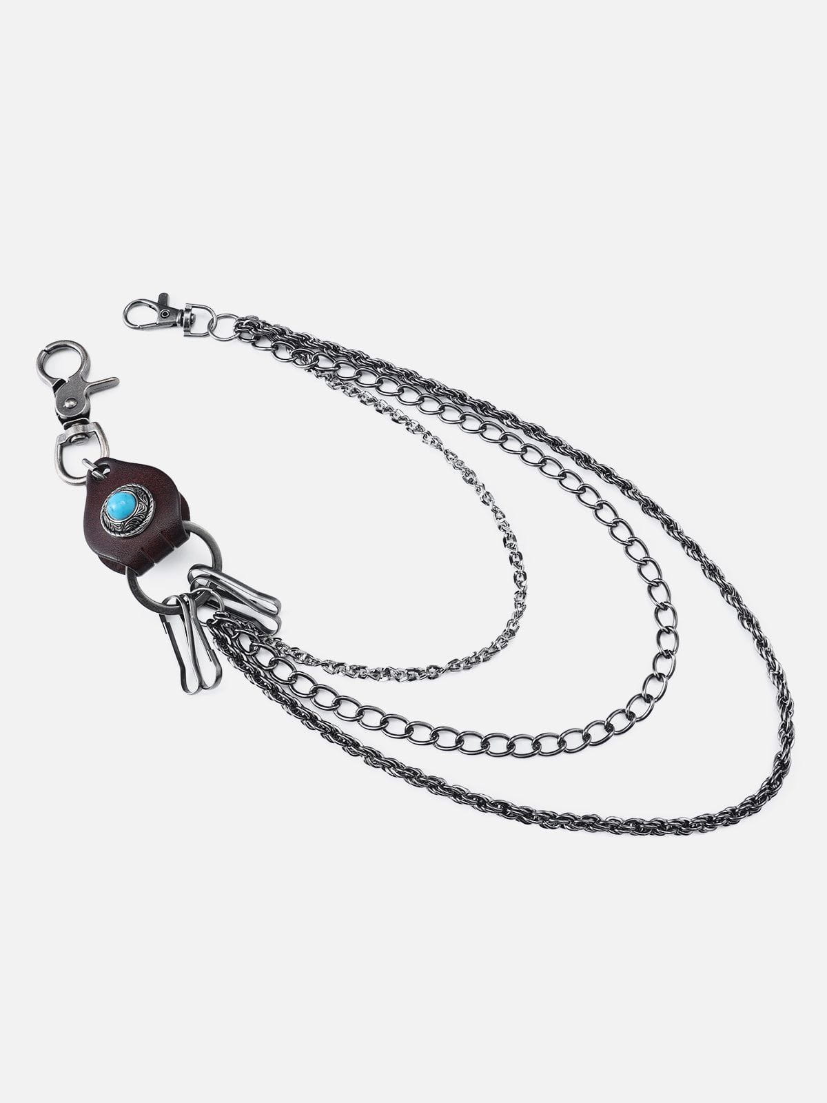 Bring dimension and edge to your fit with this multi-layered chain accessory. Crafted with contrasting chain textures. a genuine leather loop. and a turquoise-inspired stone detail. this piece blends Western aesthetics with punk energy. Clip it to your belt loop or bag for a bold street-ready finish ?? functional. versatile. and always iconic.